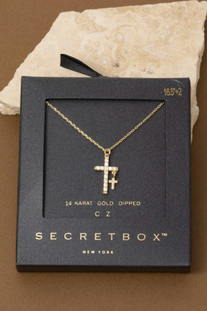 • Secret Box Gold Dipped Cz Cross Pendant Necklace