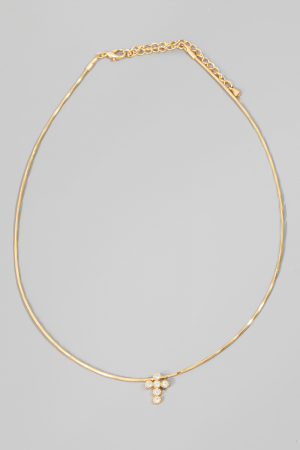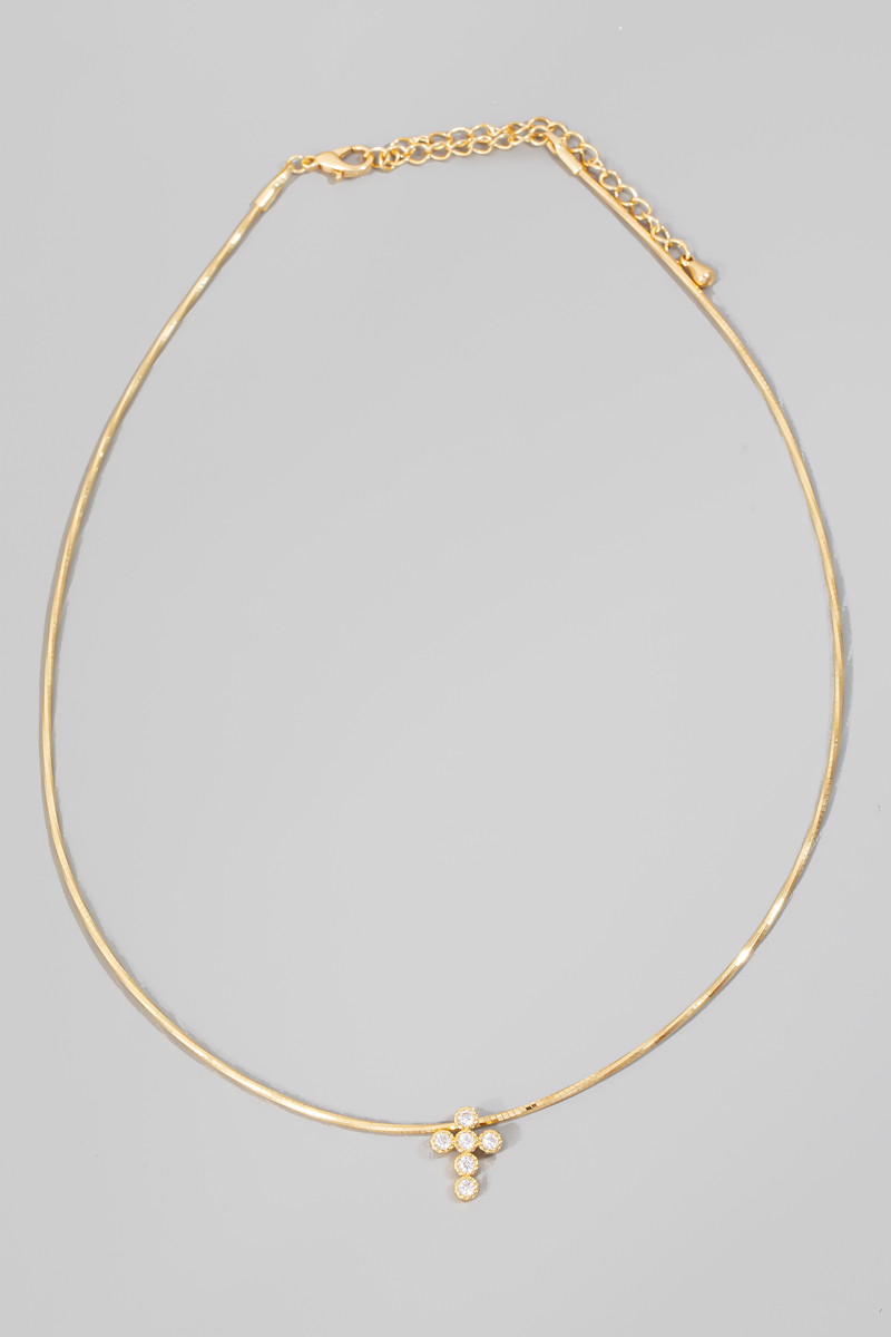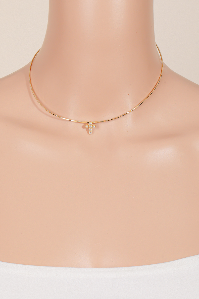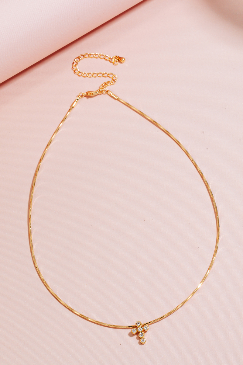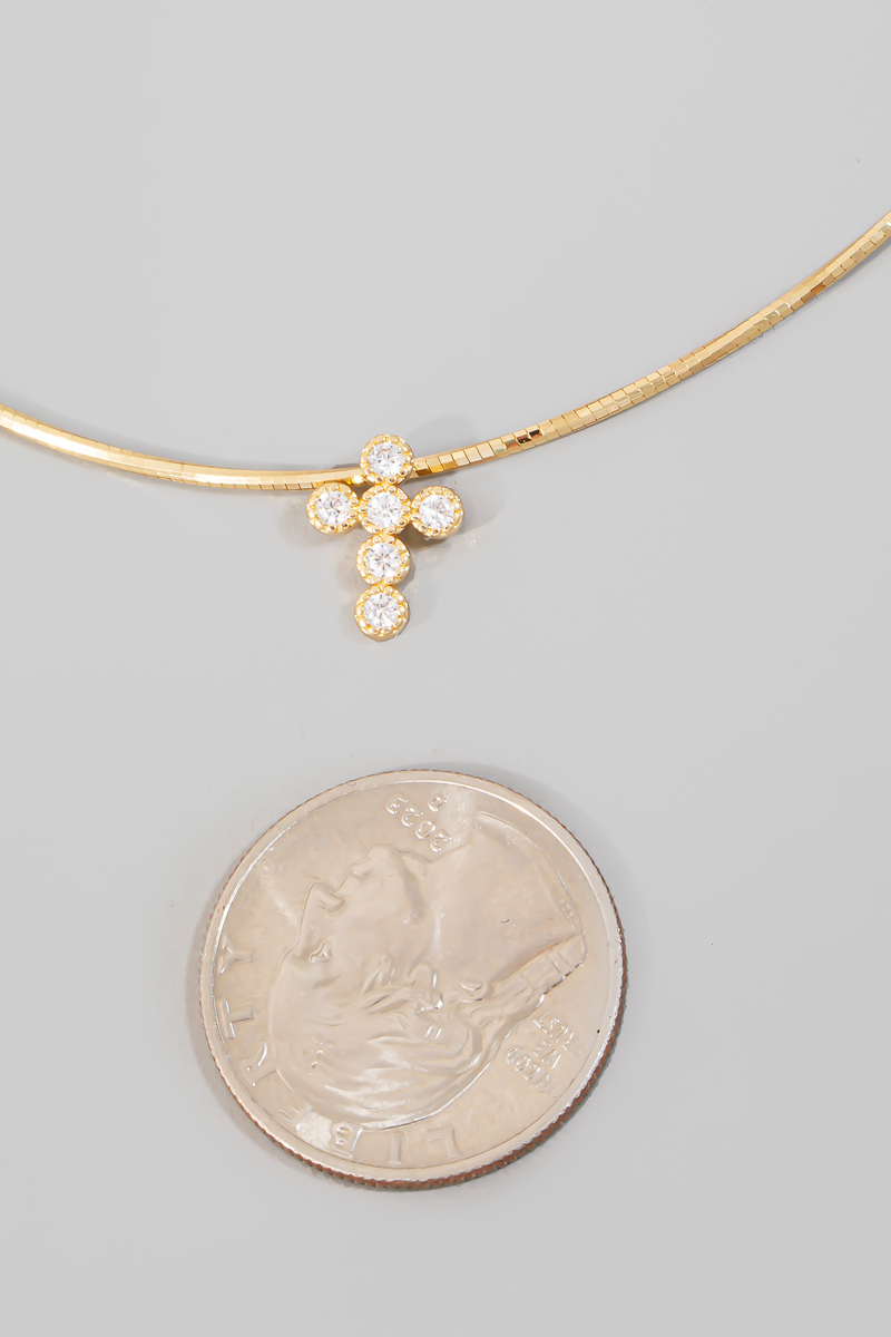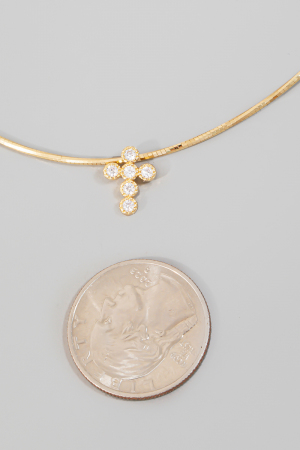 Gold Dipped Rectangle Frame Cross Pendant Necklace