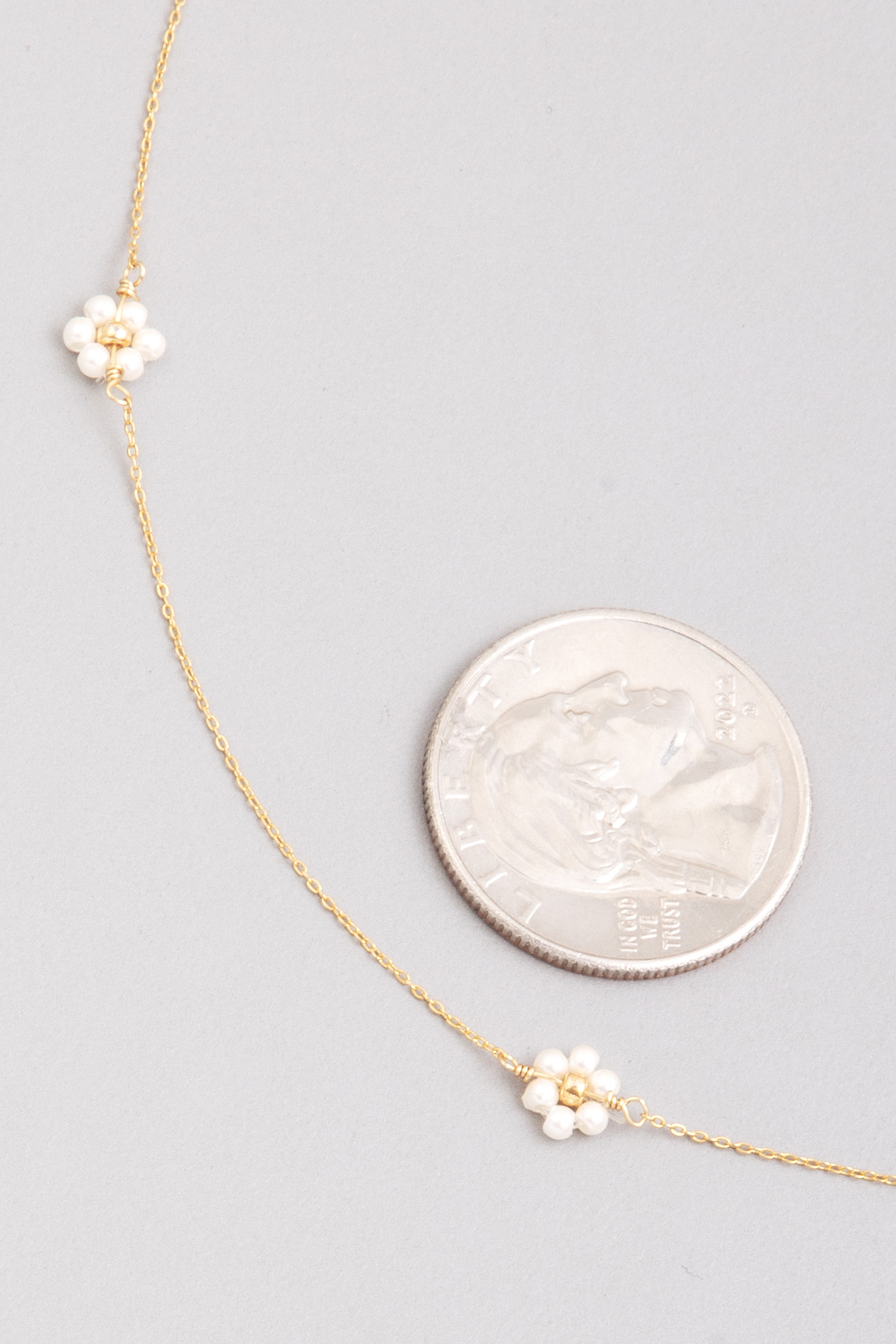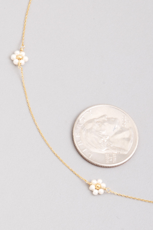 • This necklace features a fashionable dainty beaded flower charm style. Experience the joy of accessorizing with this piece that effortlessly combines versatility and charm.