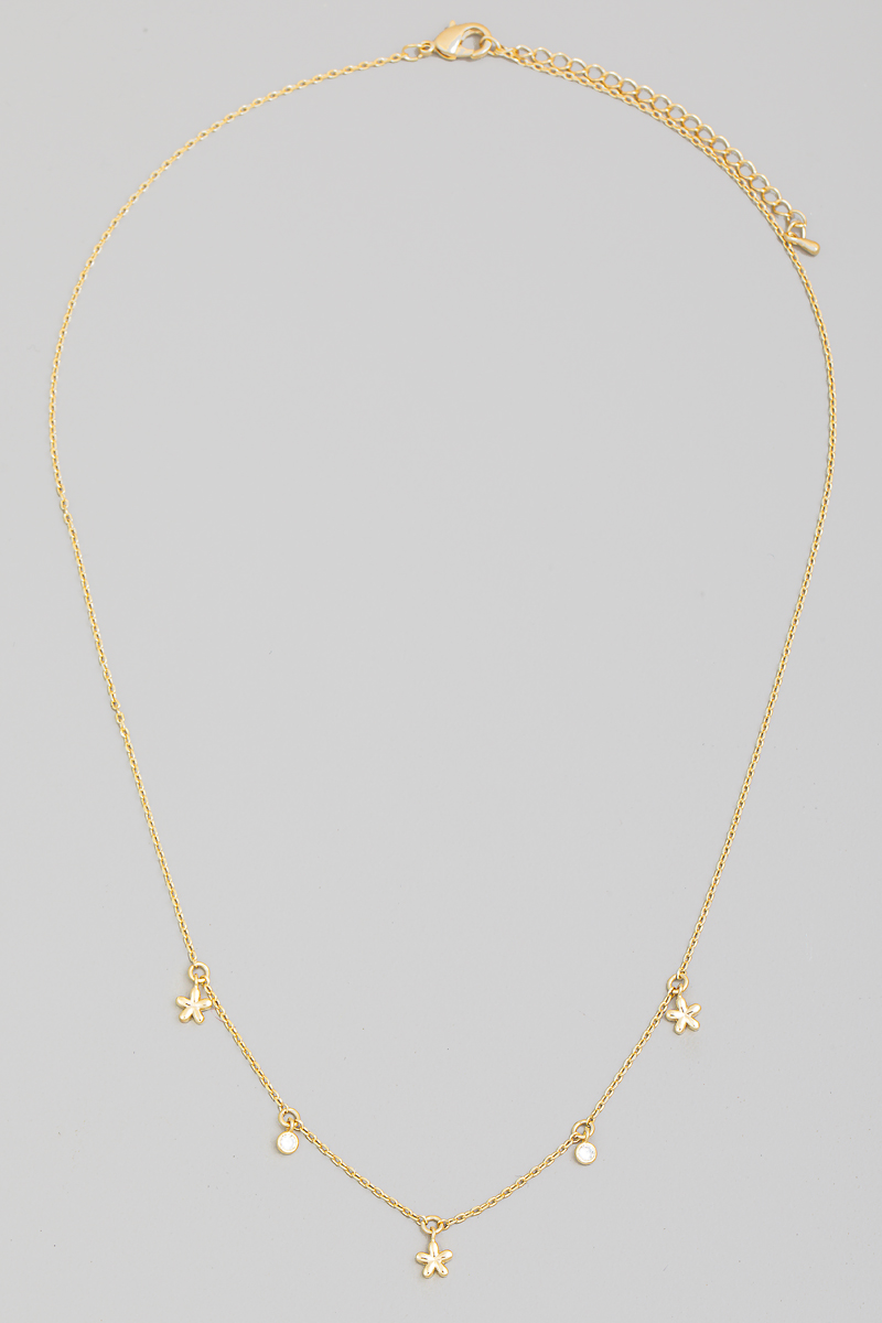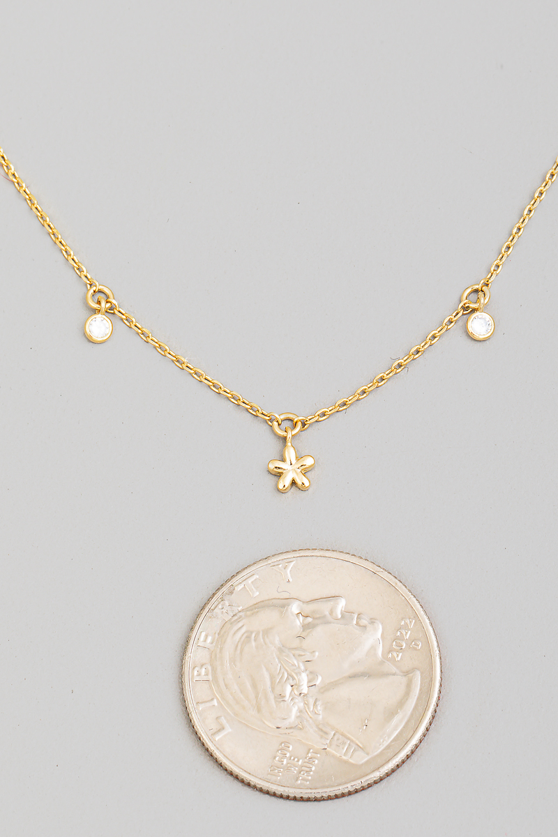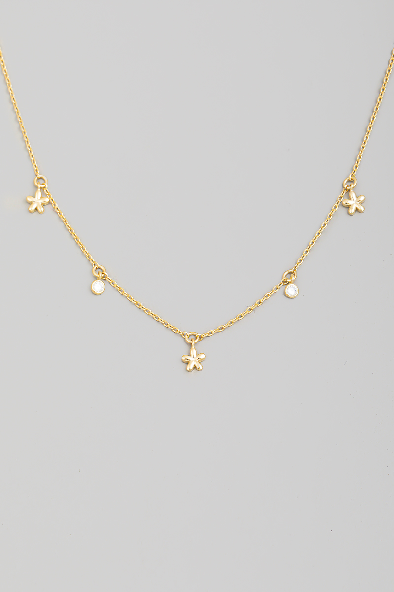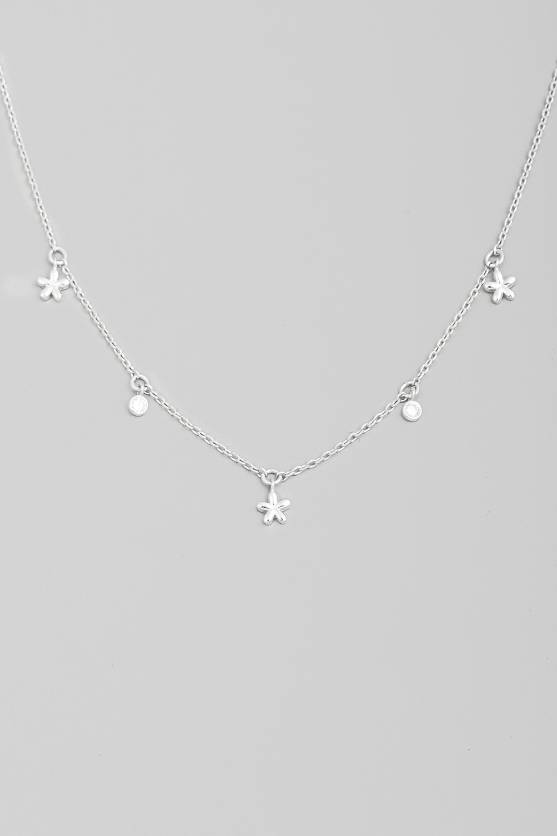 - This chain necklace brings a luxurious flower and cz charms style. Indulge in the artistry of accessorizing with this unique piece.