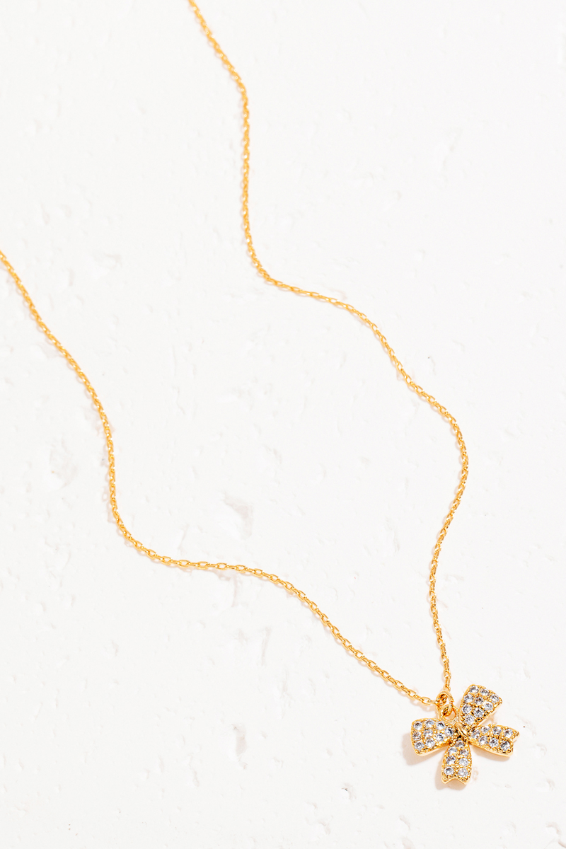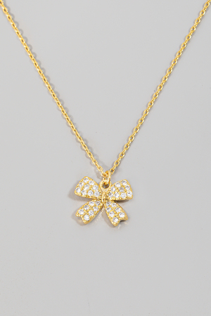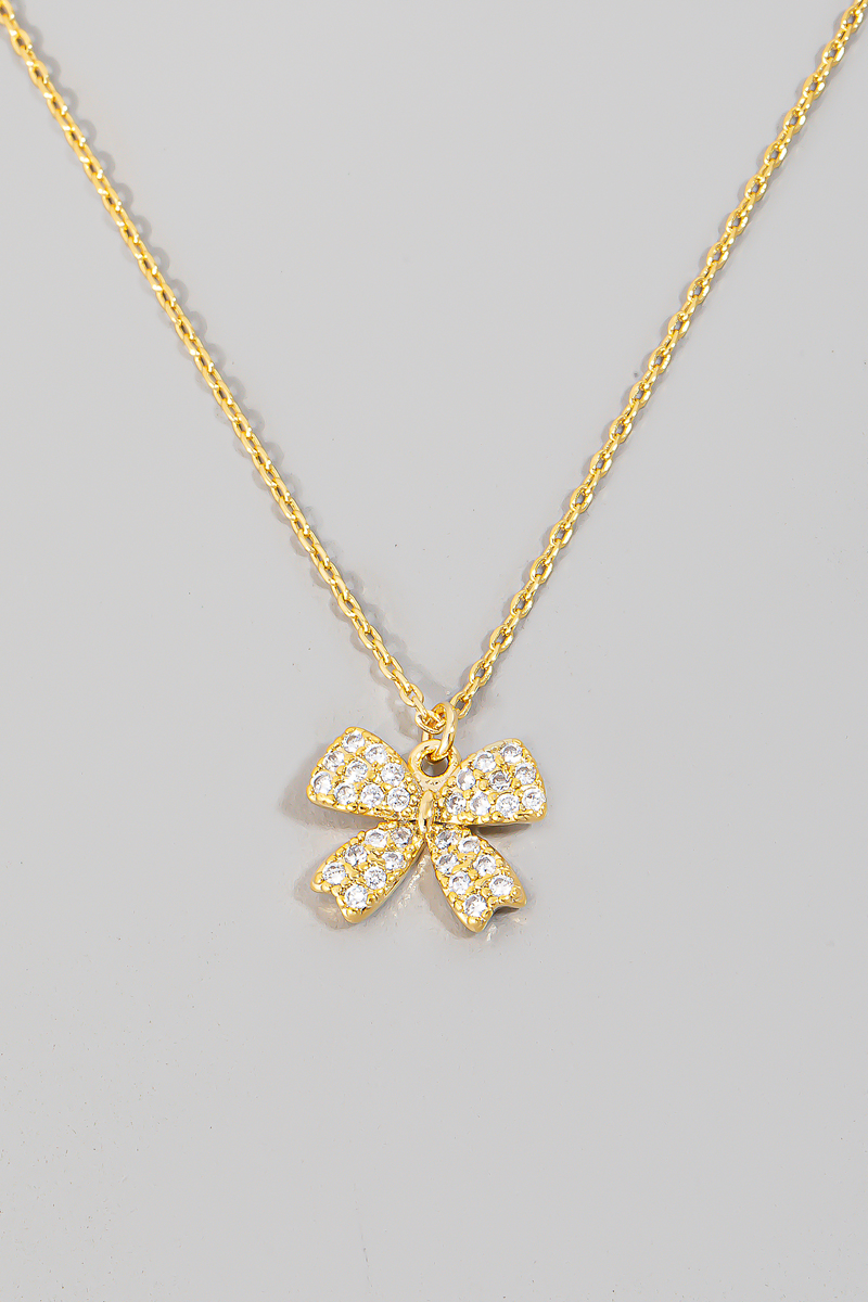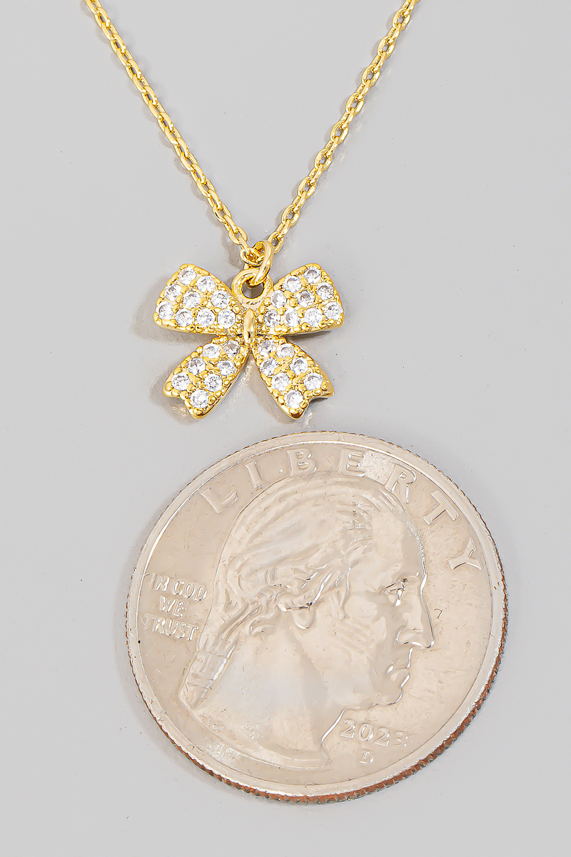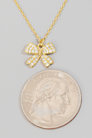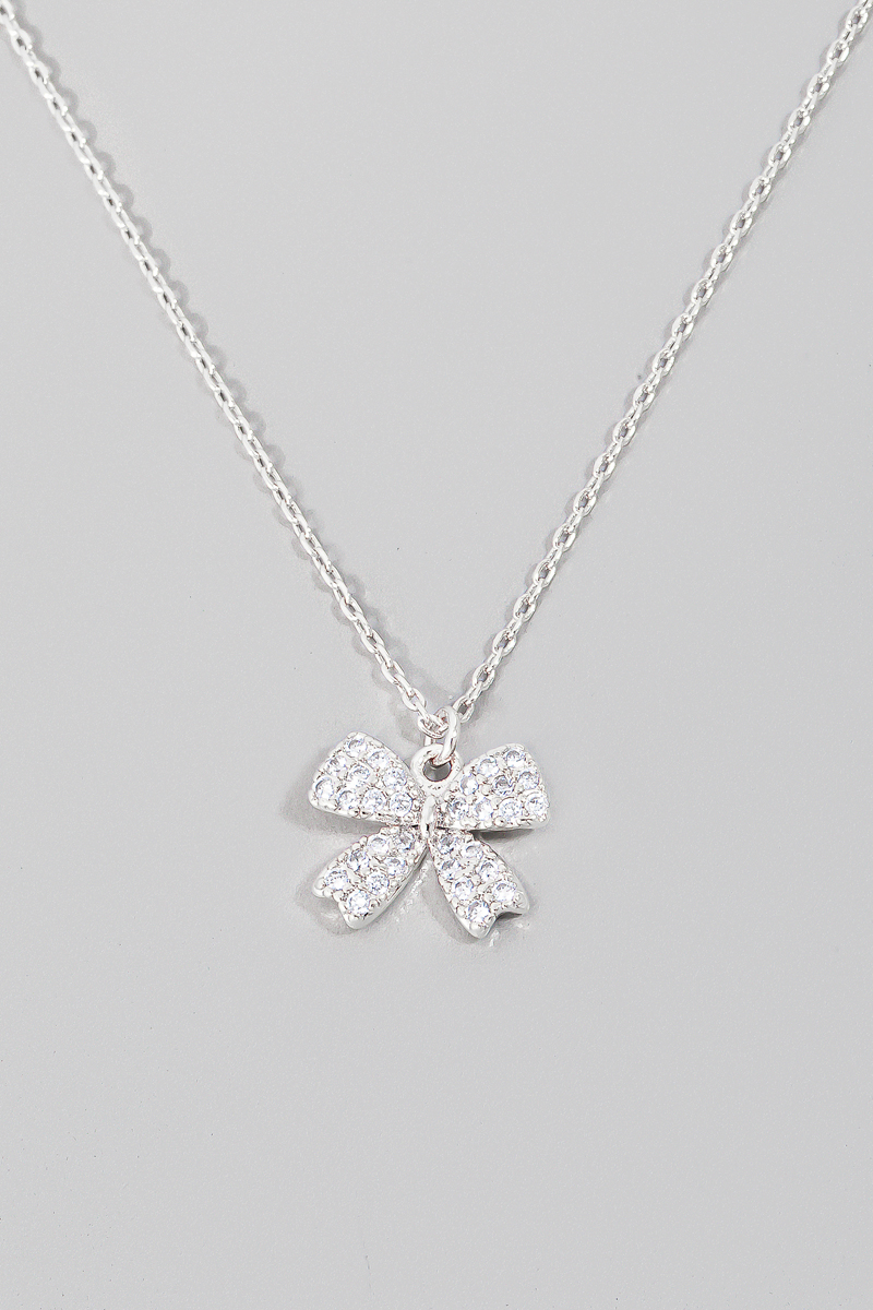 - This necklace introduces a stunning pave ribbon bow pendant style. Delight in the nuanced details that make this accessory a testament to fine design and impeccable taste.