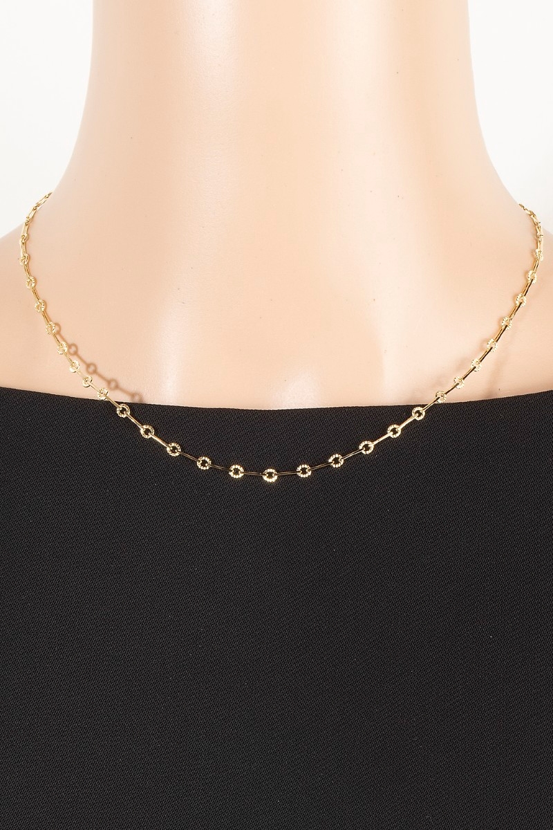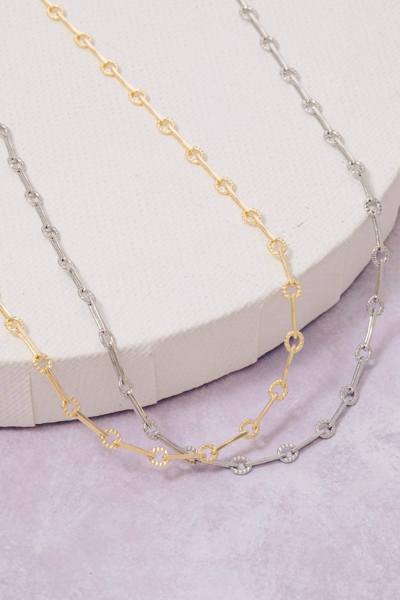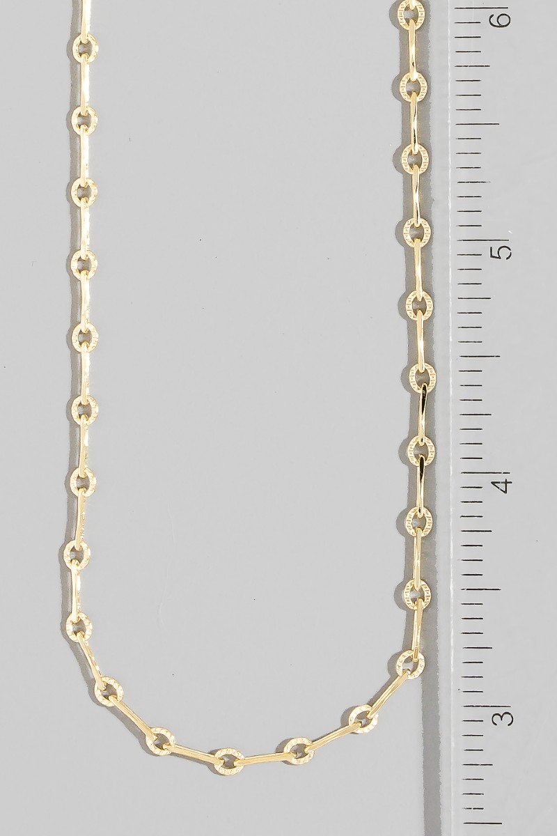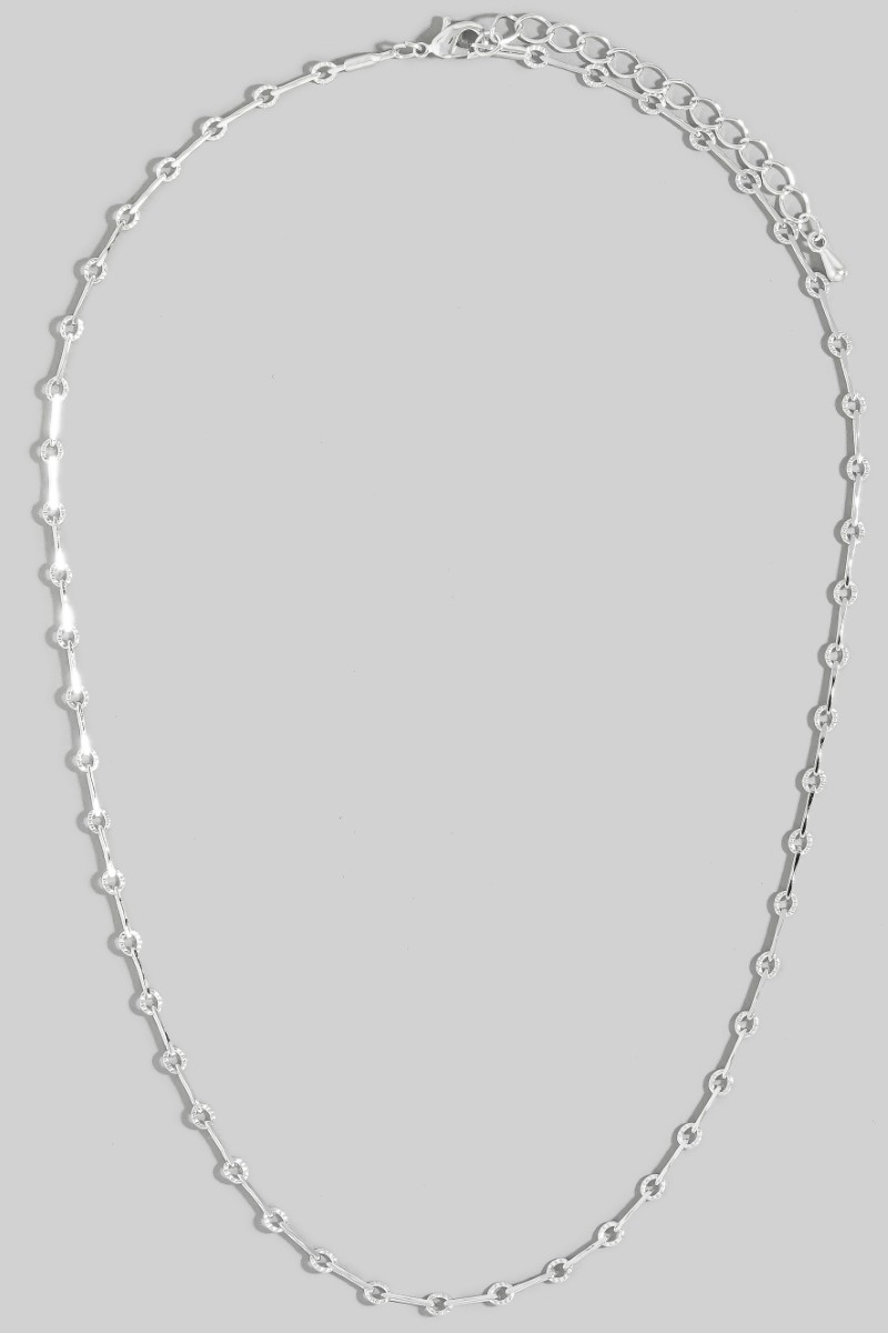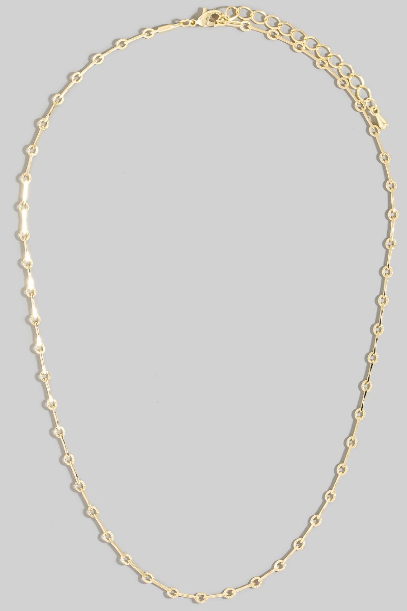 - This chain necklace showcases a timeless dainty repeating bar classic style. Explore a refined sense of style with this chain necklace, seamlessly elevating the chic factor of your look.