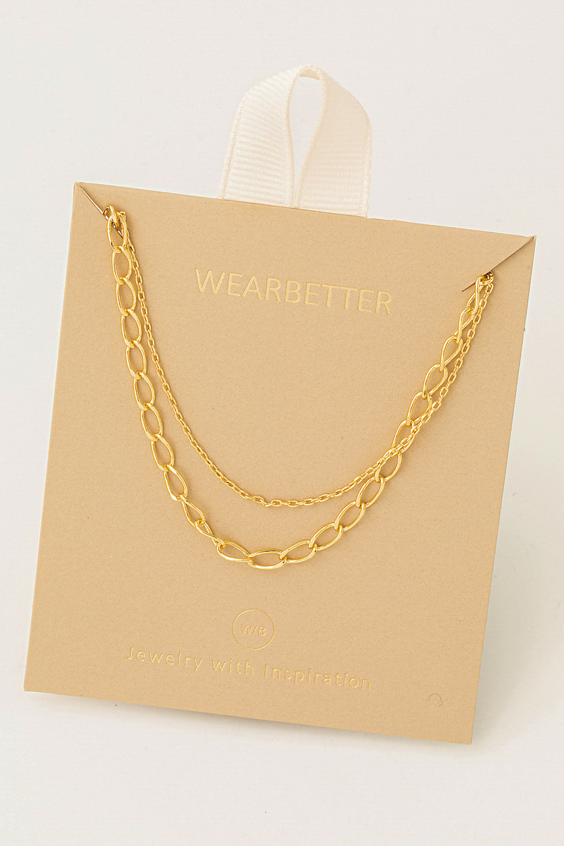 Gold Dipped Double Irregular Bar Y Chain Necklace
