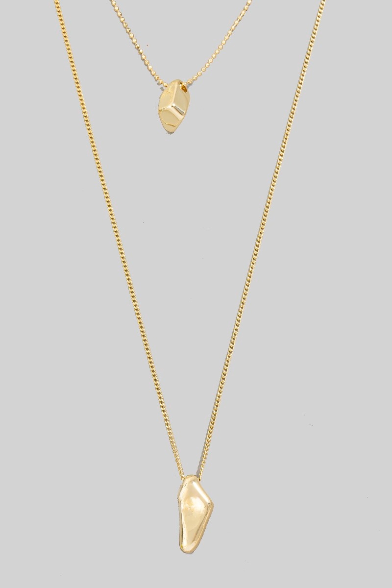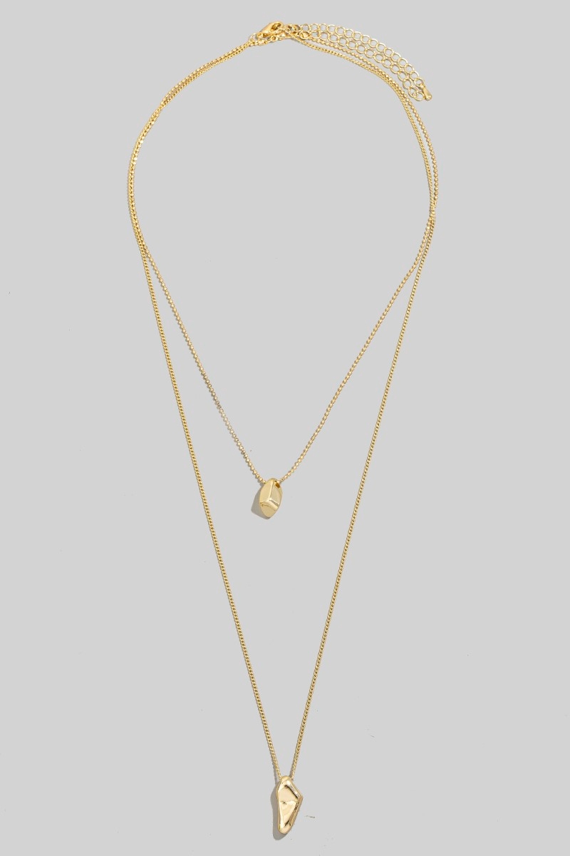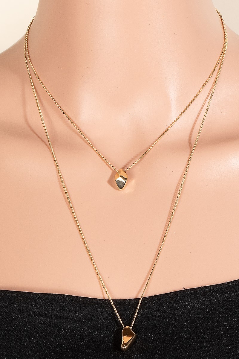 - This chain necklace showcases a unique double metallic charms layered style. Immerse yourself in fashion finesse with this statement chain necklace.
