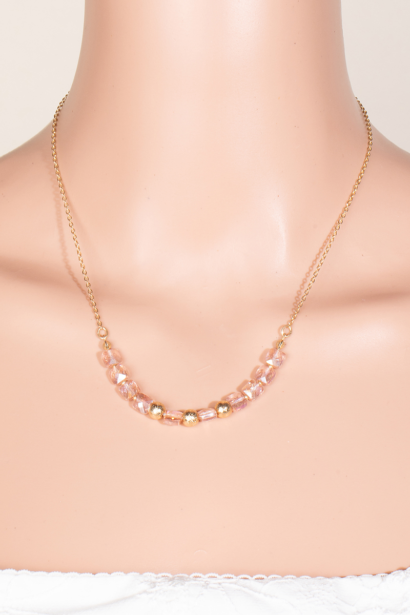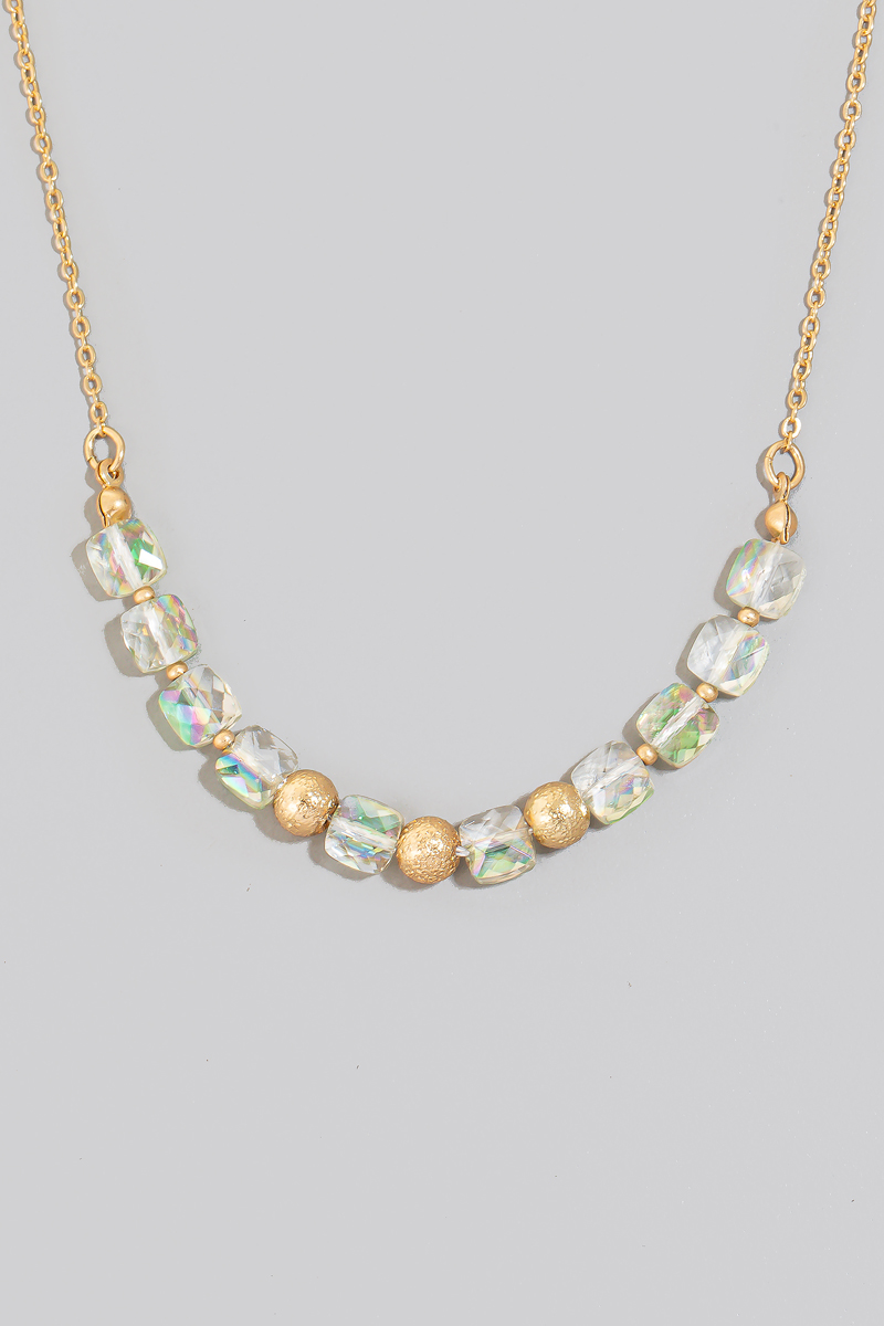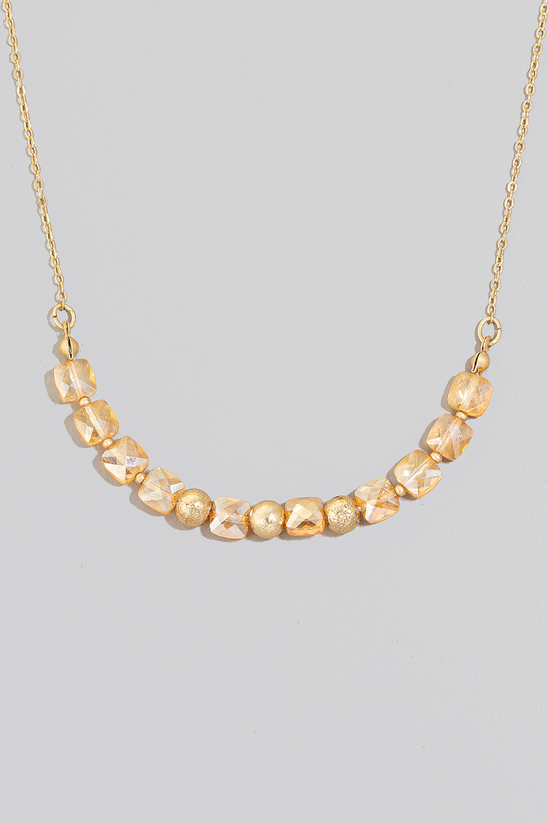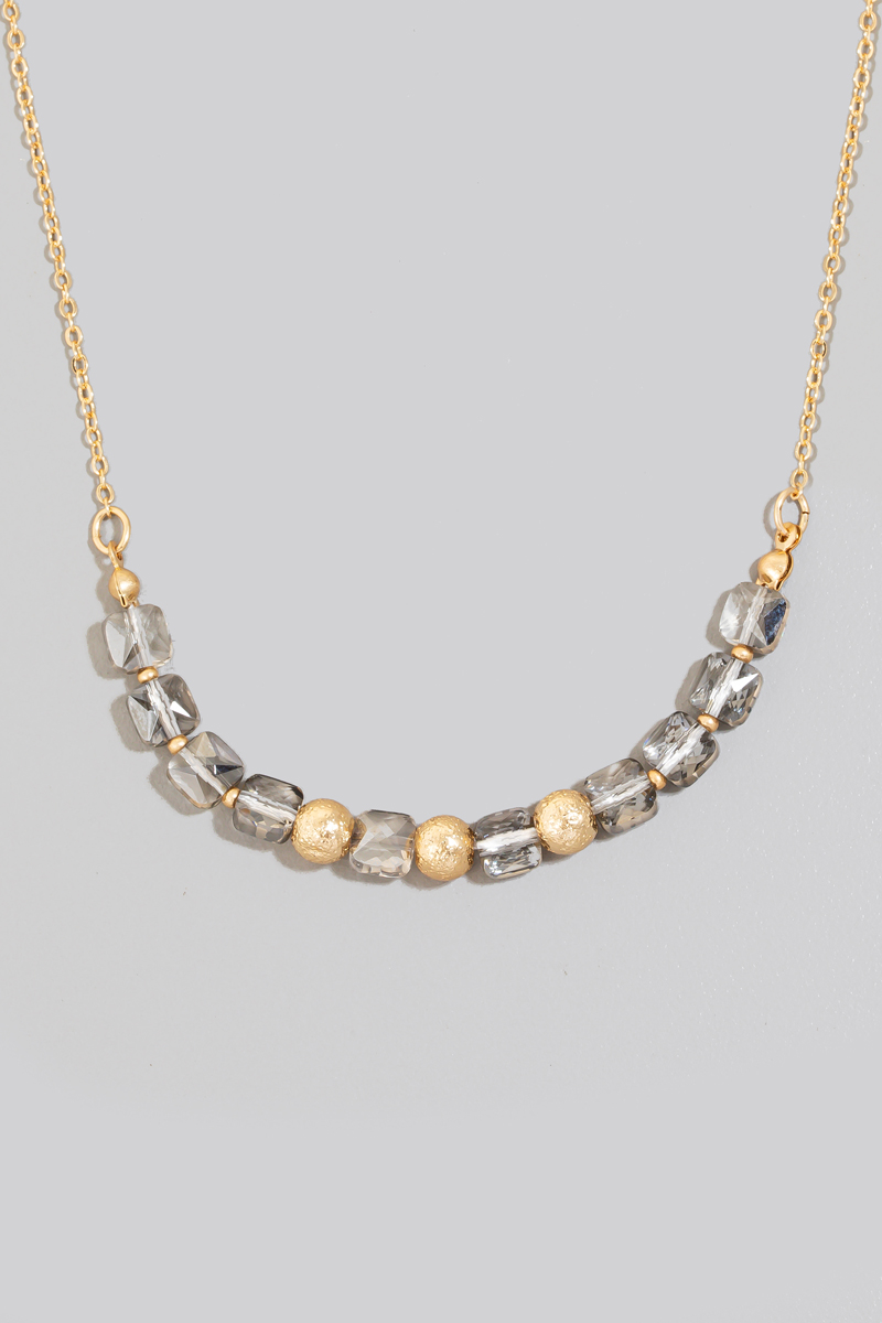 • This chain necklace brings a luxurious faceted glass and metallic beads style. Experience refined sophistication with this understated yet stylish piece.