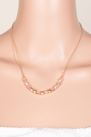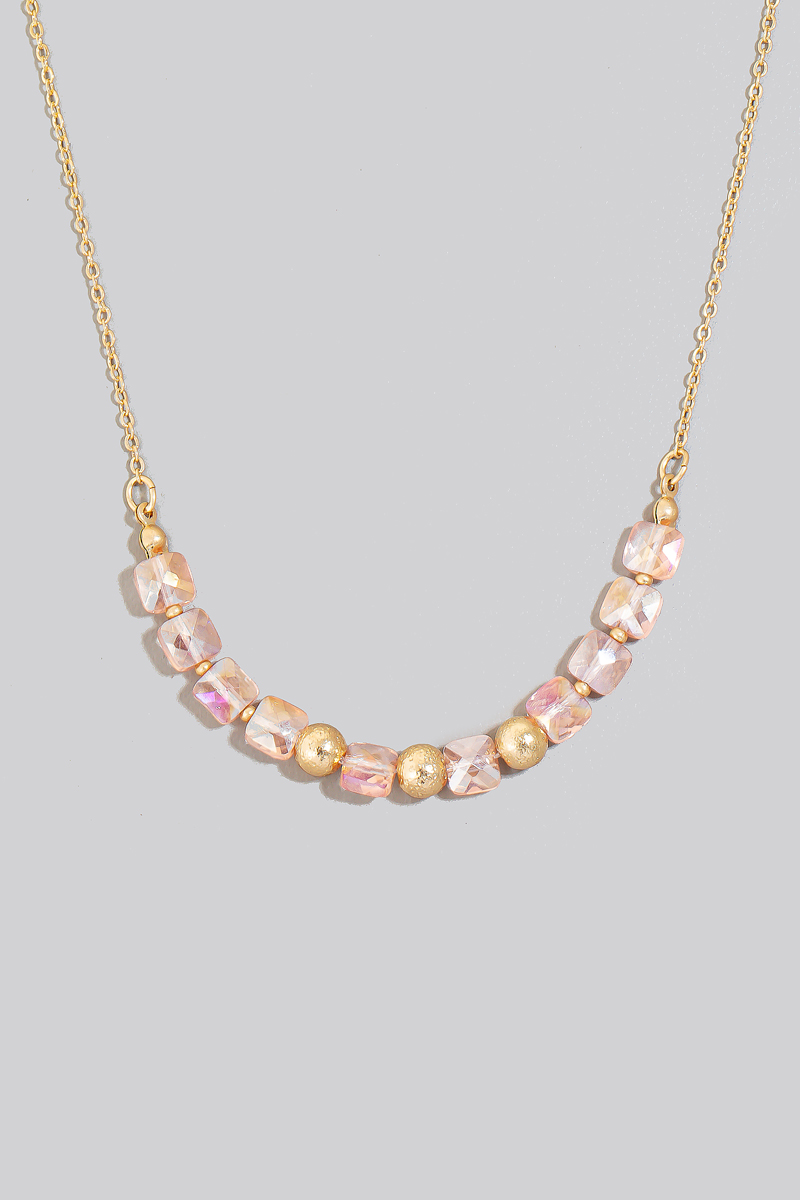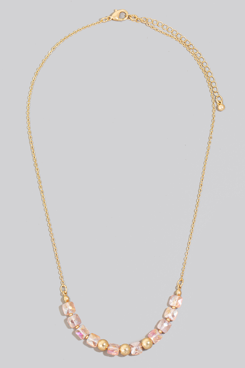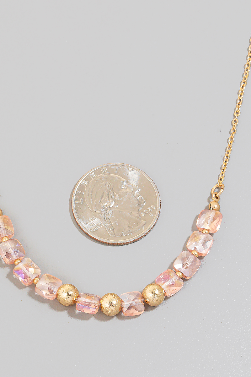 • This chain necklace brings a luxurious faceted glass and metallic beads style. Experience refined sophistication with this understated yet stylish piece.