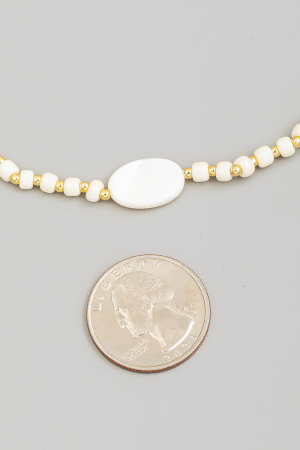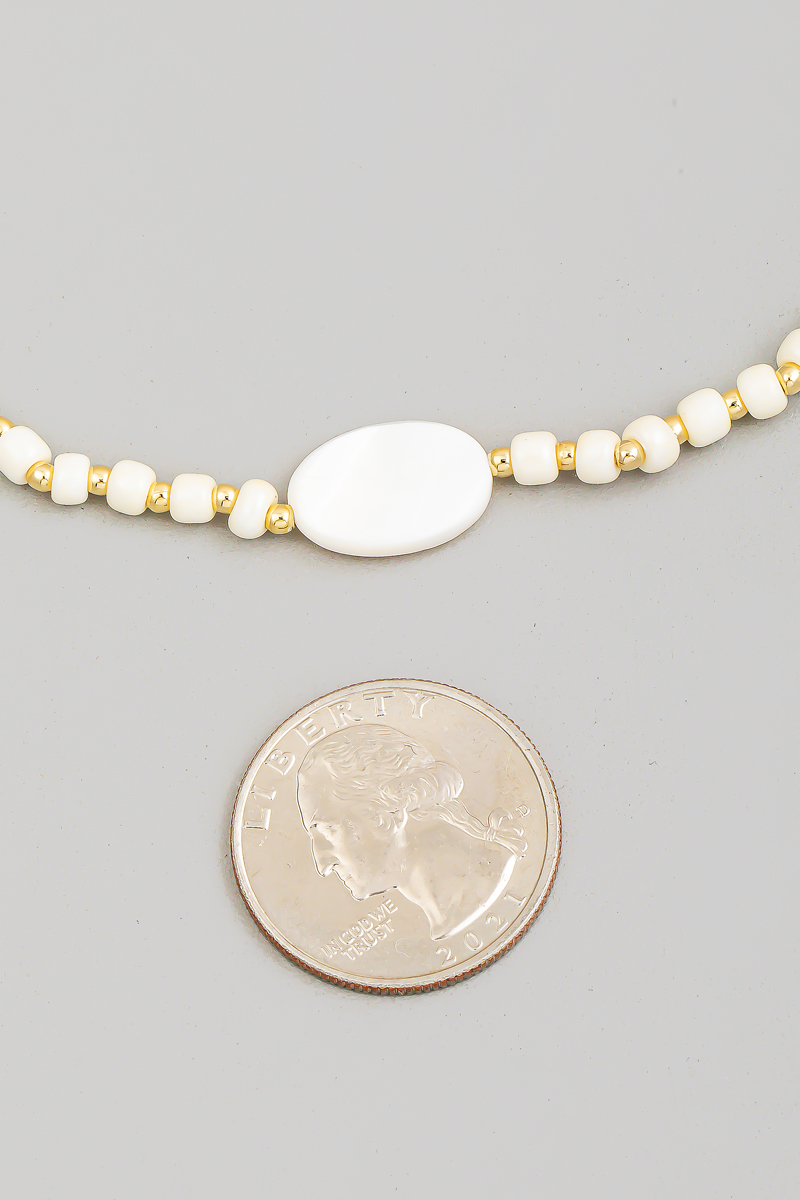- This necklace introduces a stunning flat oval pearl beads station beaded style. Experience refined sophistication with this understated yet stylish piece.