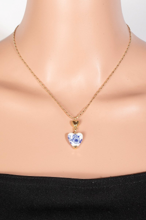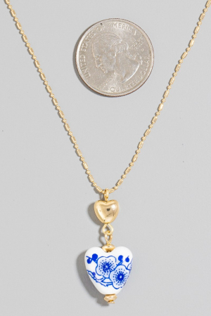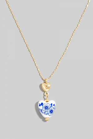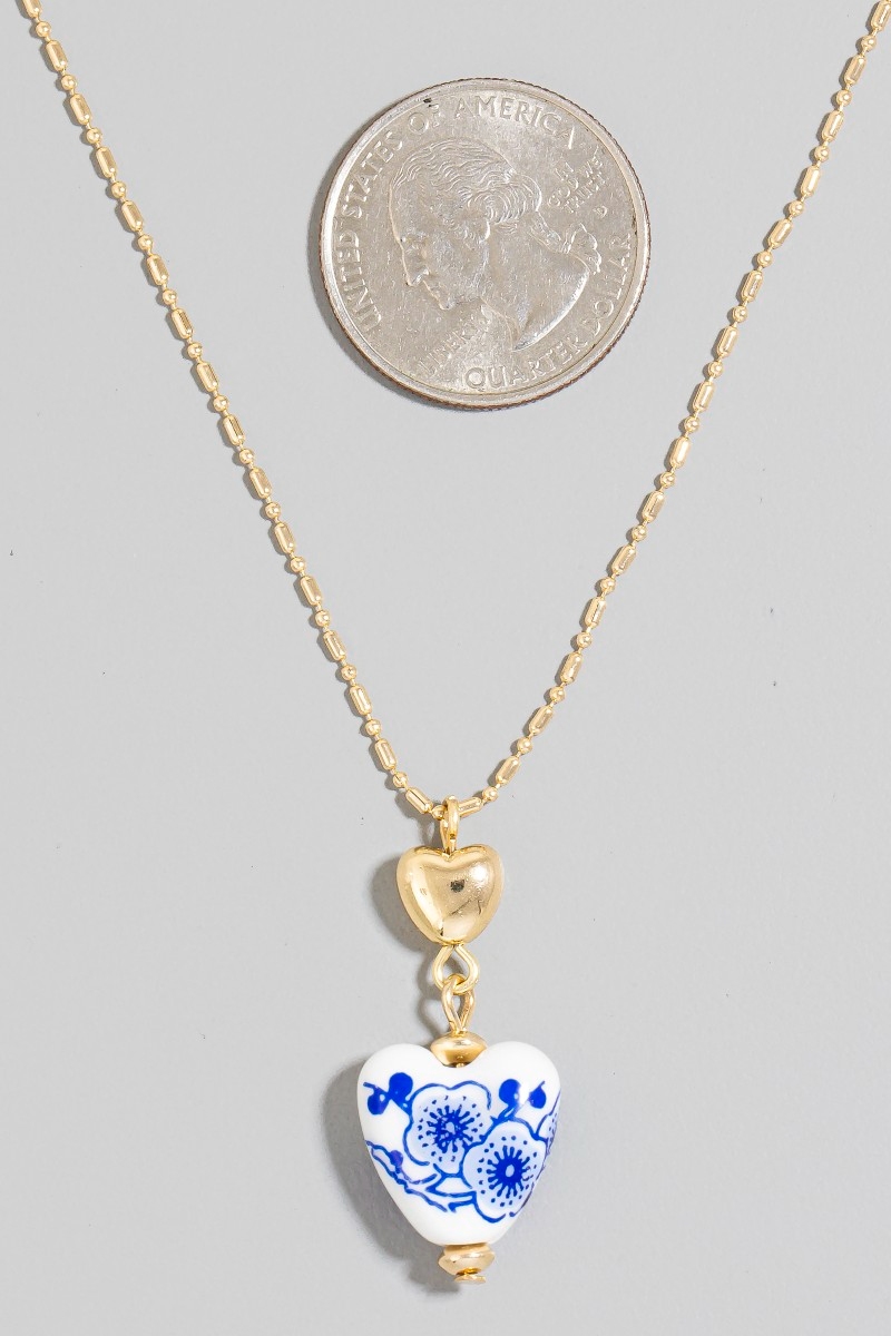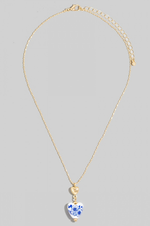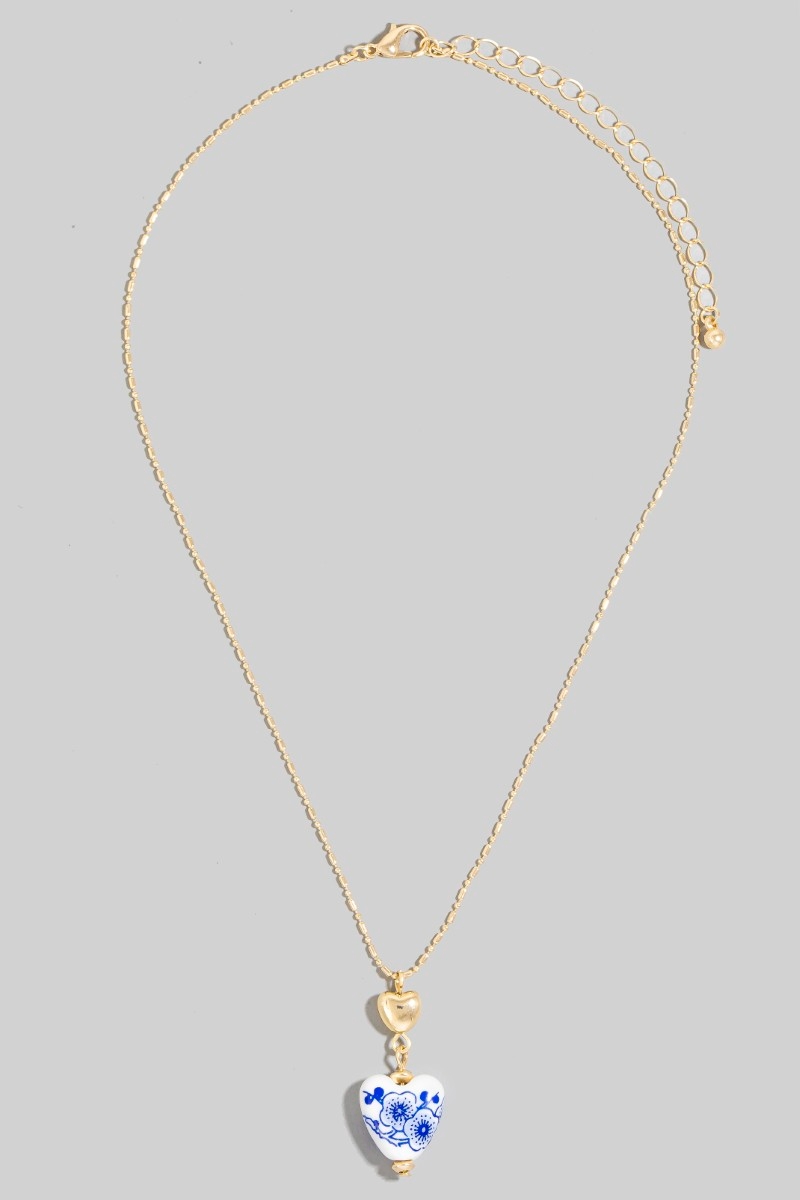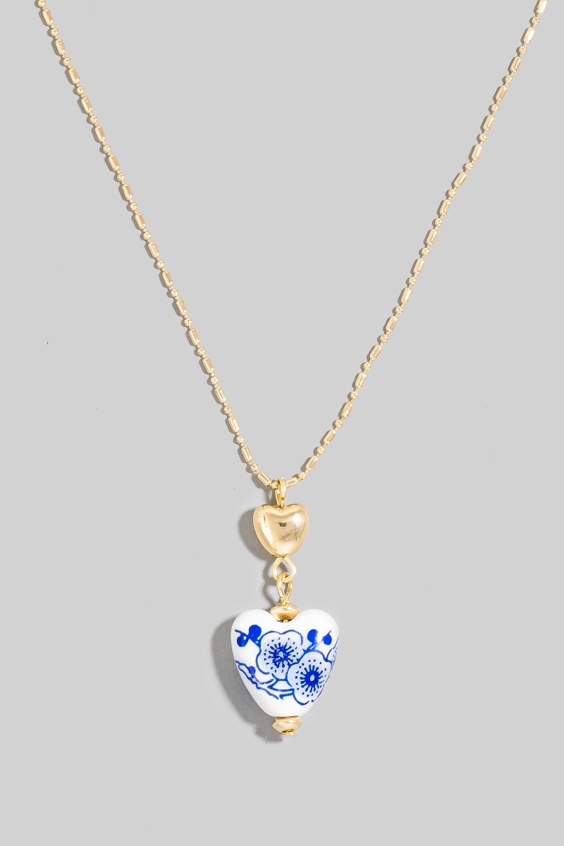 - This chain necklace showcases a timeless floral ceramic heart style. Elevate your ensemble with this chain necklace that effortlessly captures the essence of refined fashion.