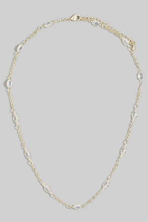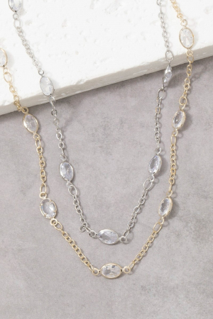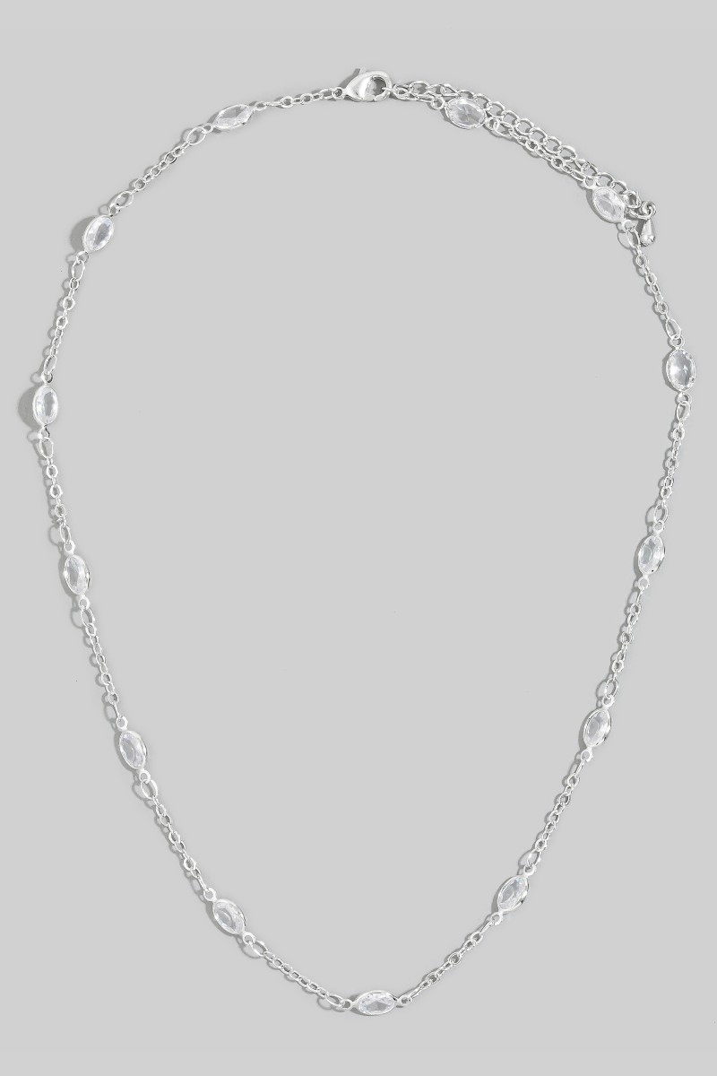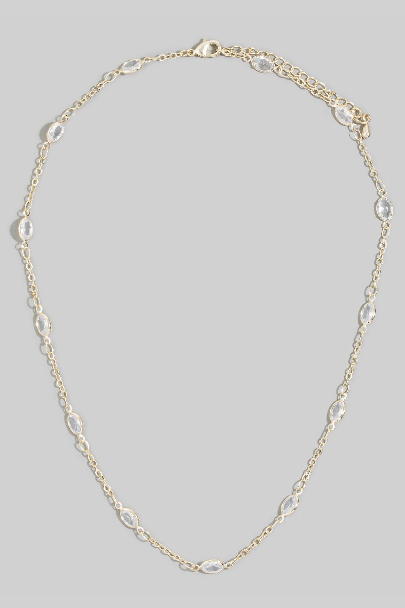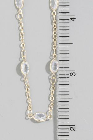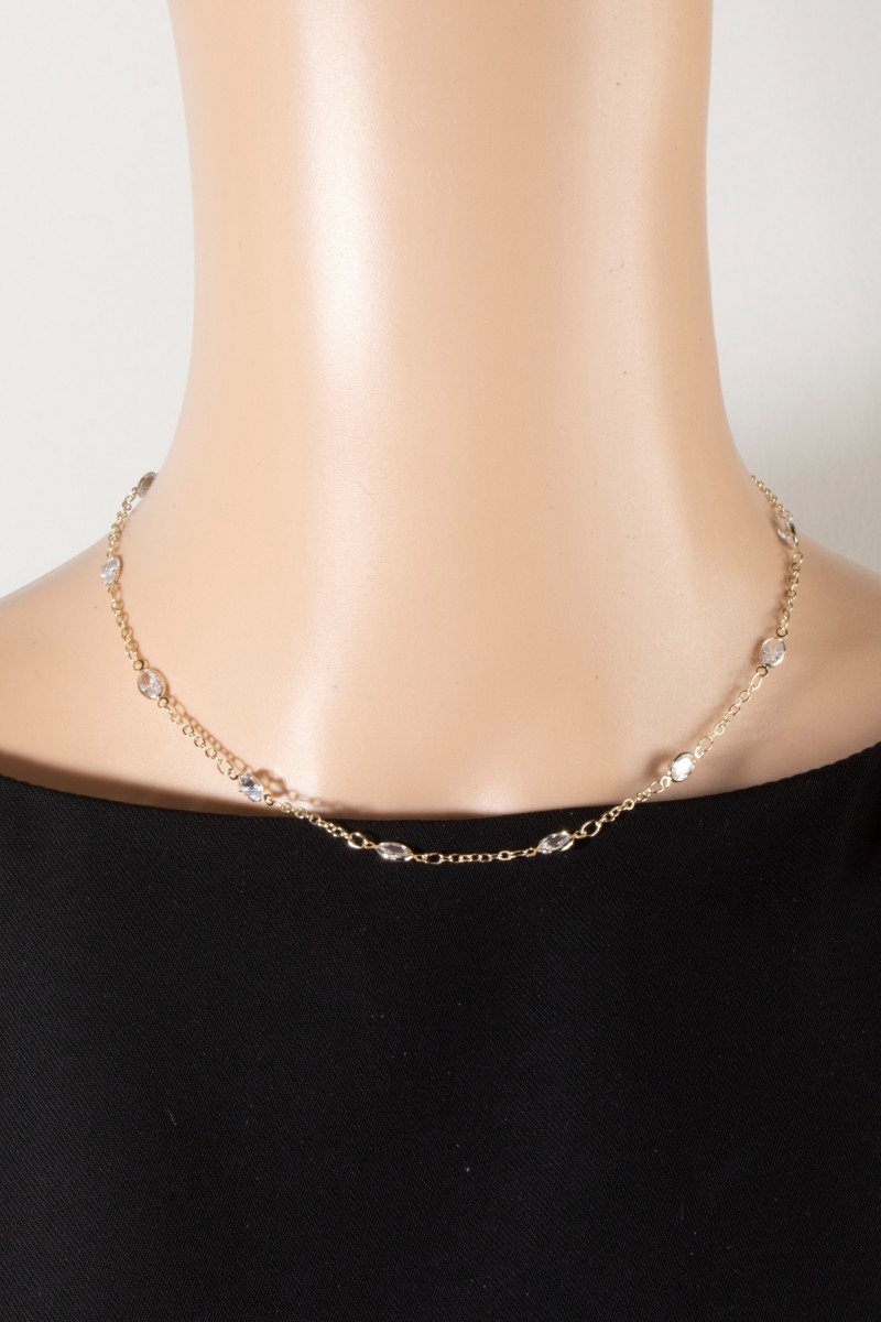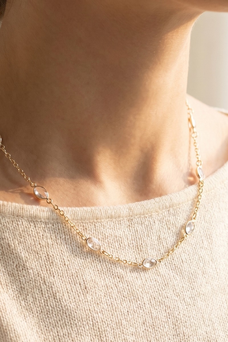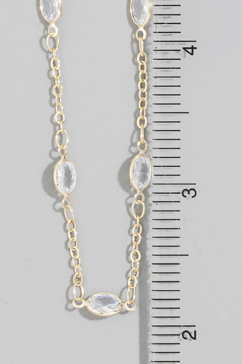 - This necklace introduces a stunning gold chain oval cubic zirconia bezel station style. Experience the joy of accessorizing with this piece that effortlessly combines versatility and charm.