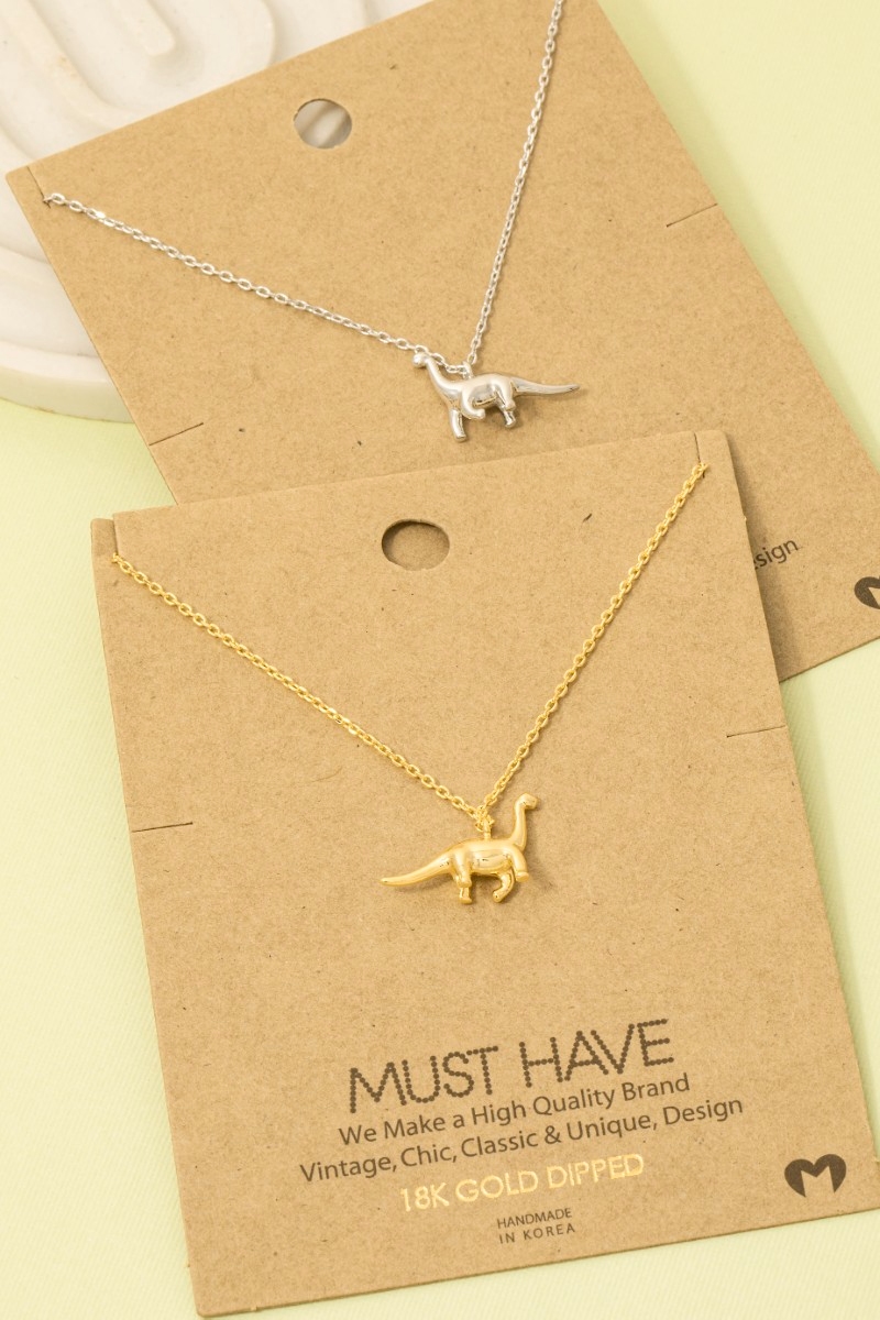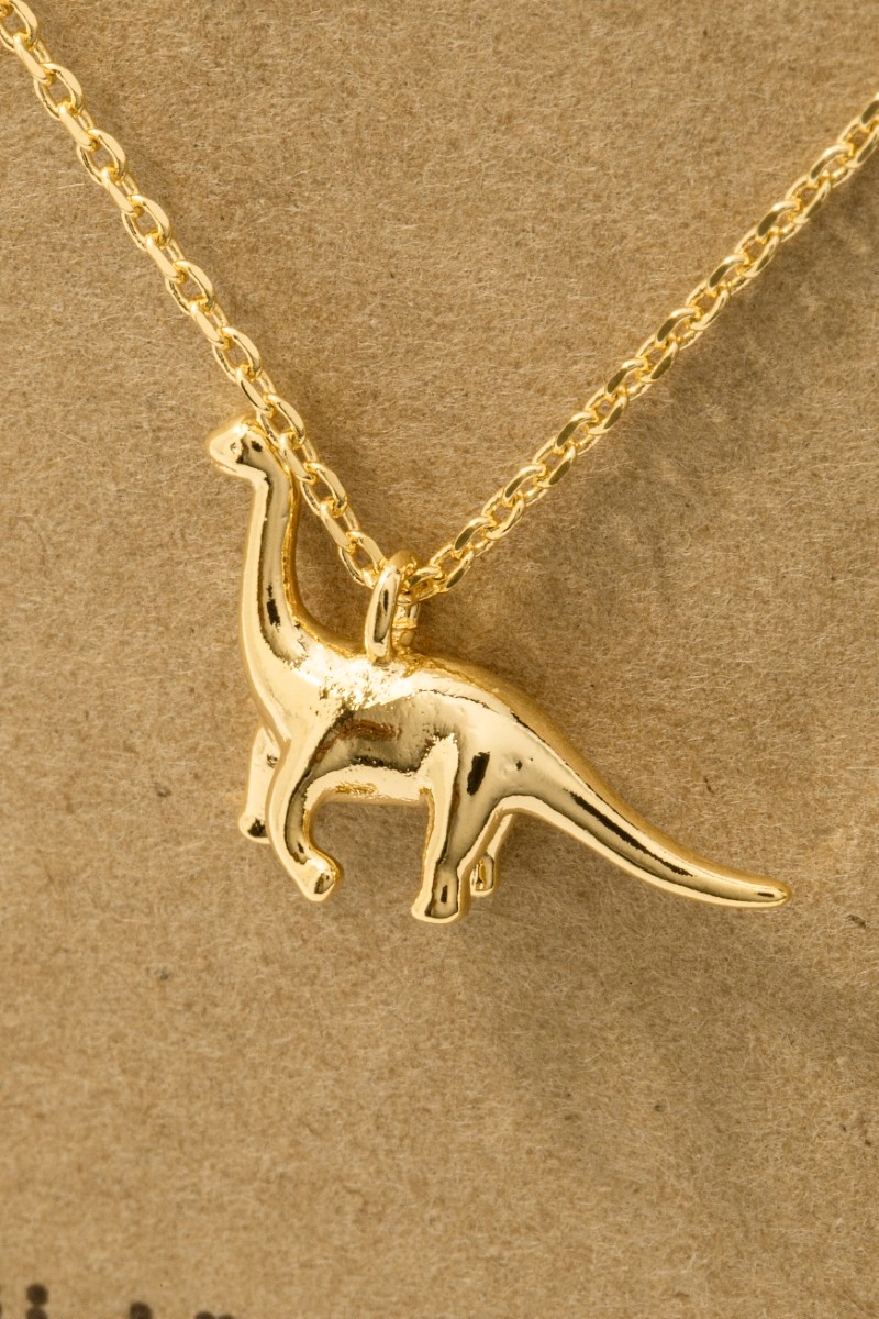 • This trending necklace brings a unique gold dipped brachiosaurus dinosaur pendant necklace style. Unveil modern elegance with this subtly intricate trending necklace.