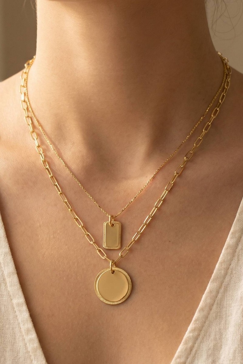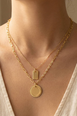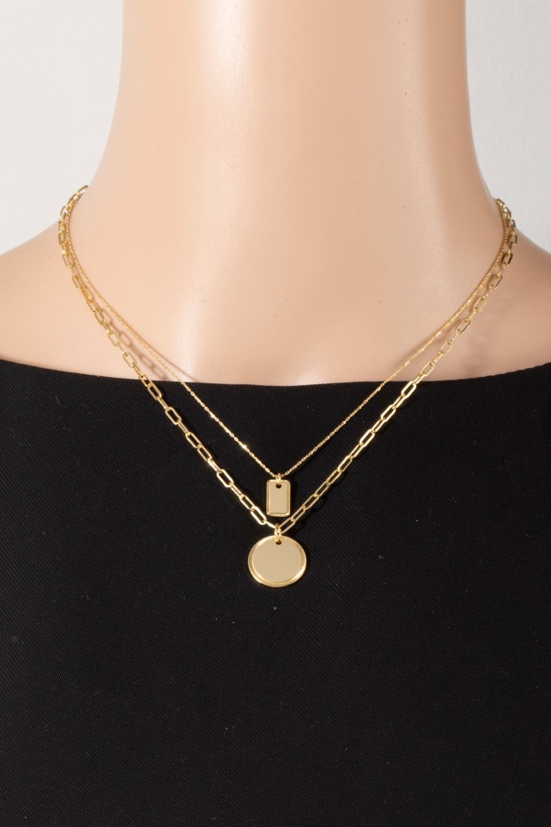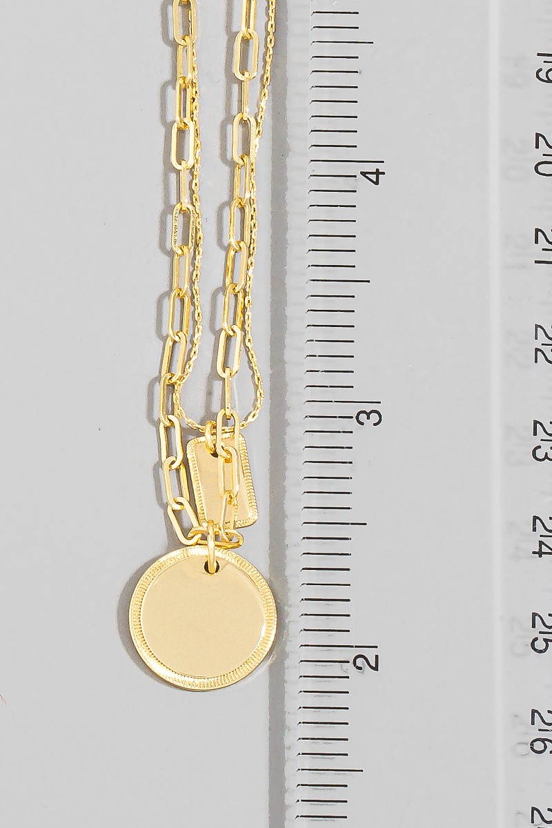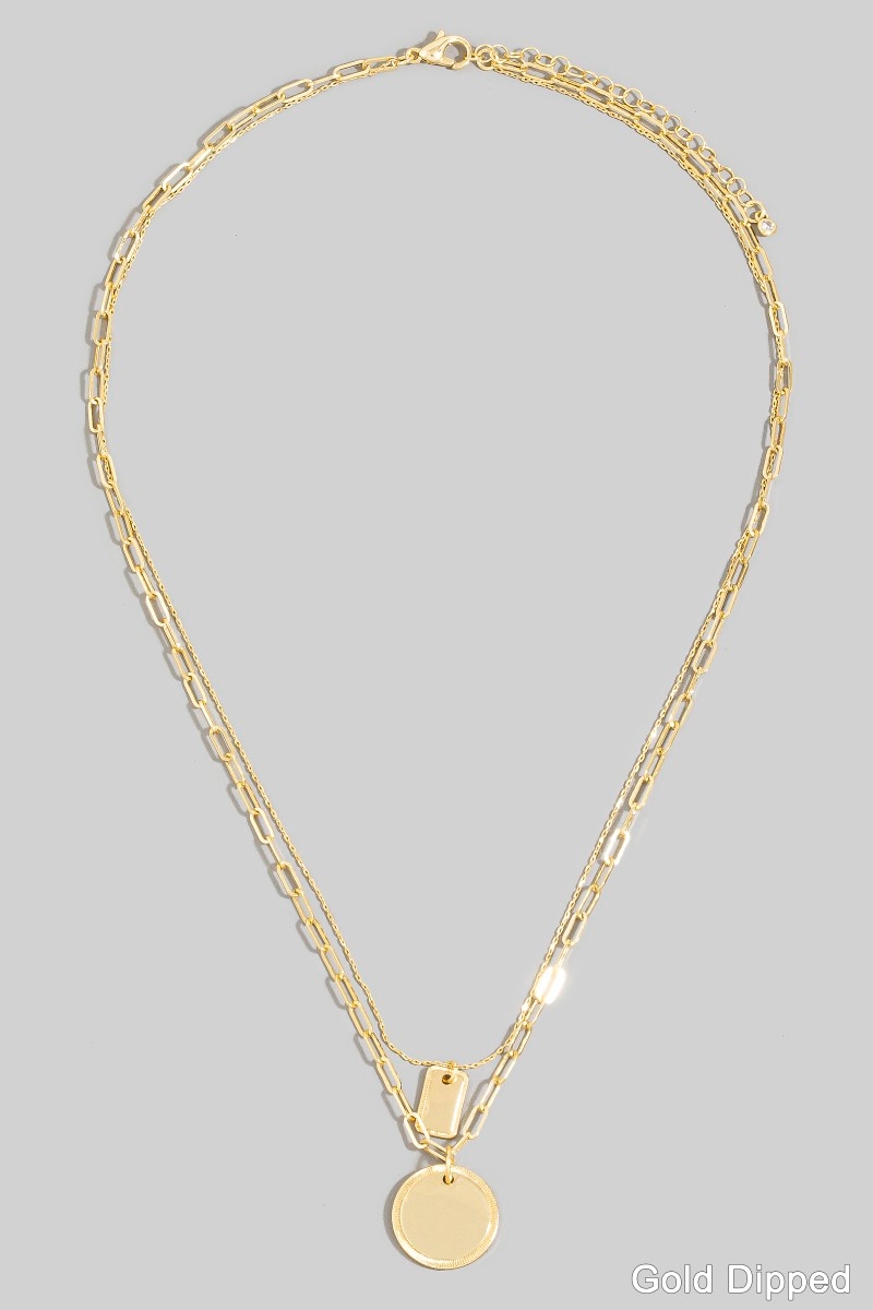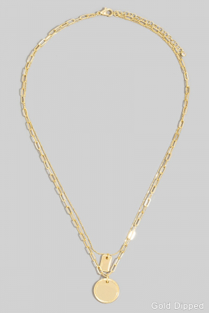 • This layered necklace introduces a unique gold dipped coin pendant style. Elevate your ensemble with this chic, timeless layered necklace.