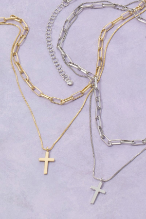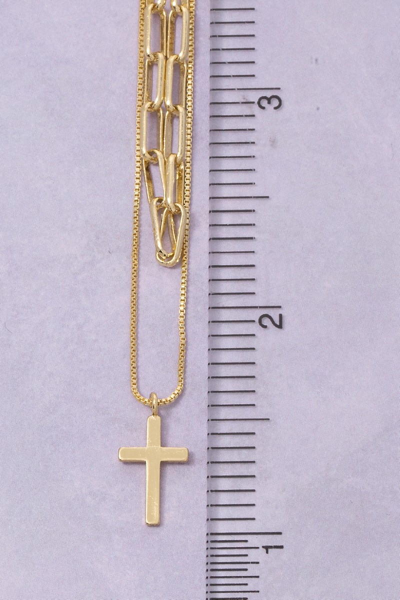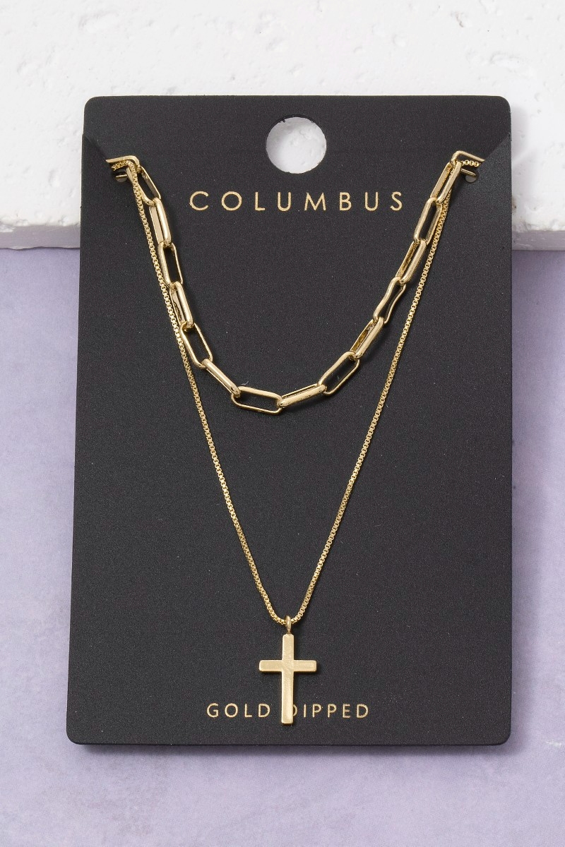 - This chain necklace showcases a timeless gold dipped cross pendant layered style. Revel in the intricate design that effortlessly distinguishes this chain necklace, making it a statement piece.