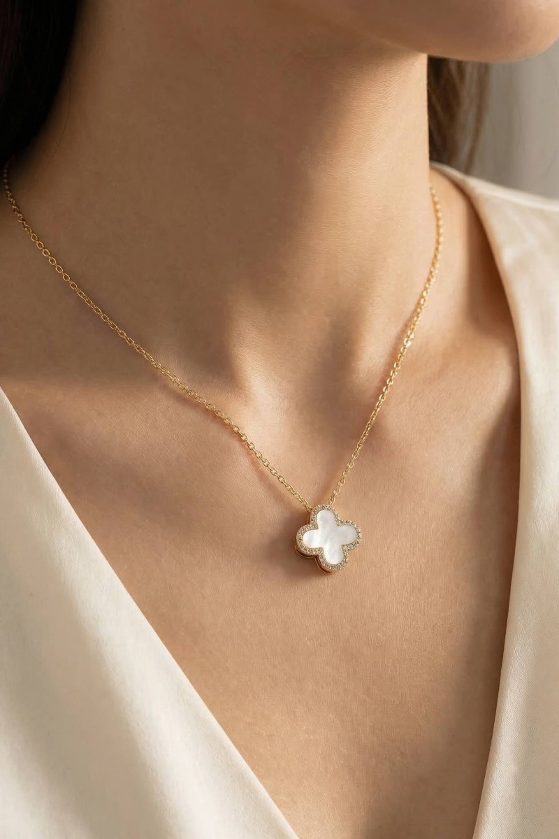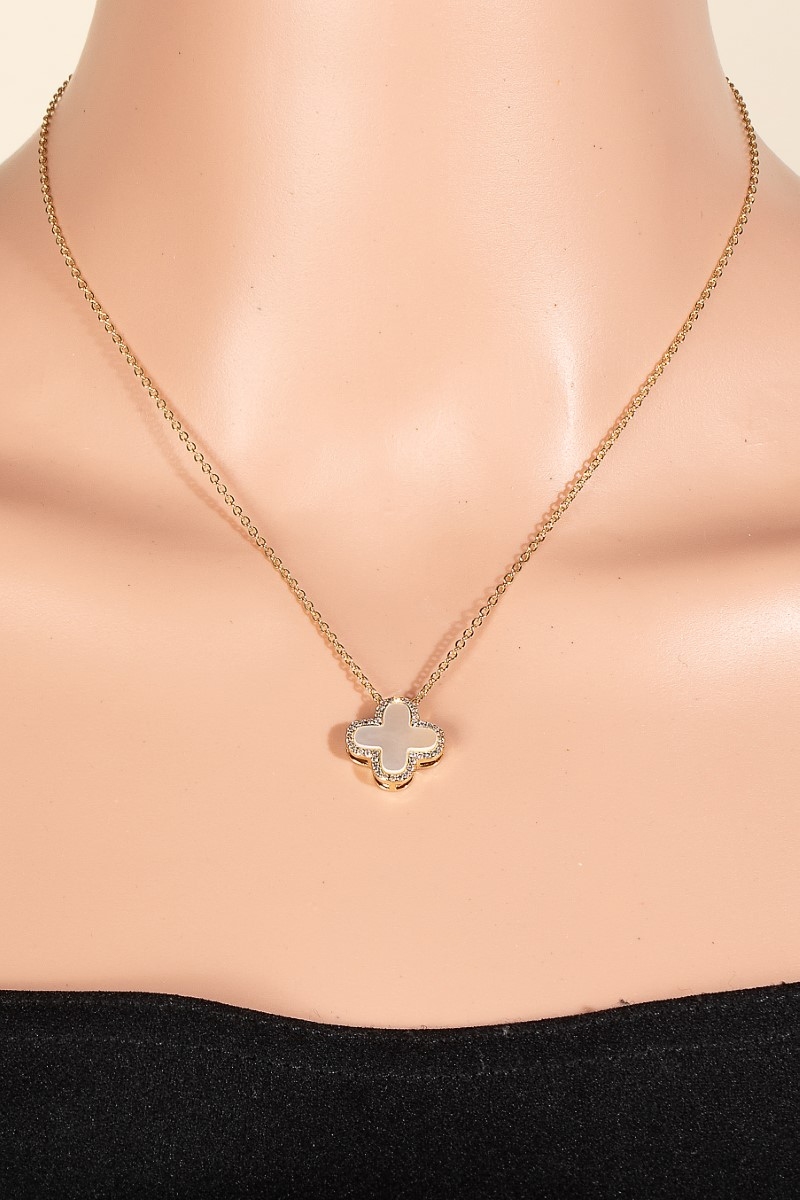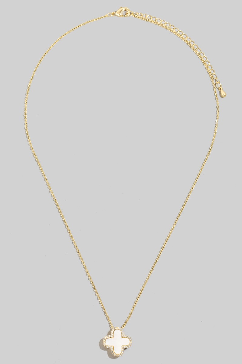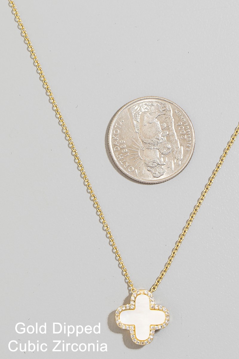 - This necklace displays a vibrant gold dipped cubic zirconia halo shell clover pendant style. Elevate your ensemble with this necklace that effortlessly captures the essence of refined fashion.