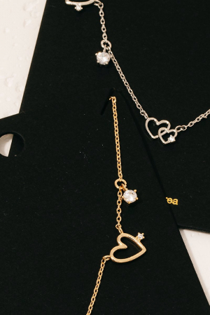 - This chain necklace displays a fashionable gold dipped cubic zirconia and hearts station charms style. Elevate your ensemble with this chic, timeless chain necklace.