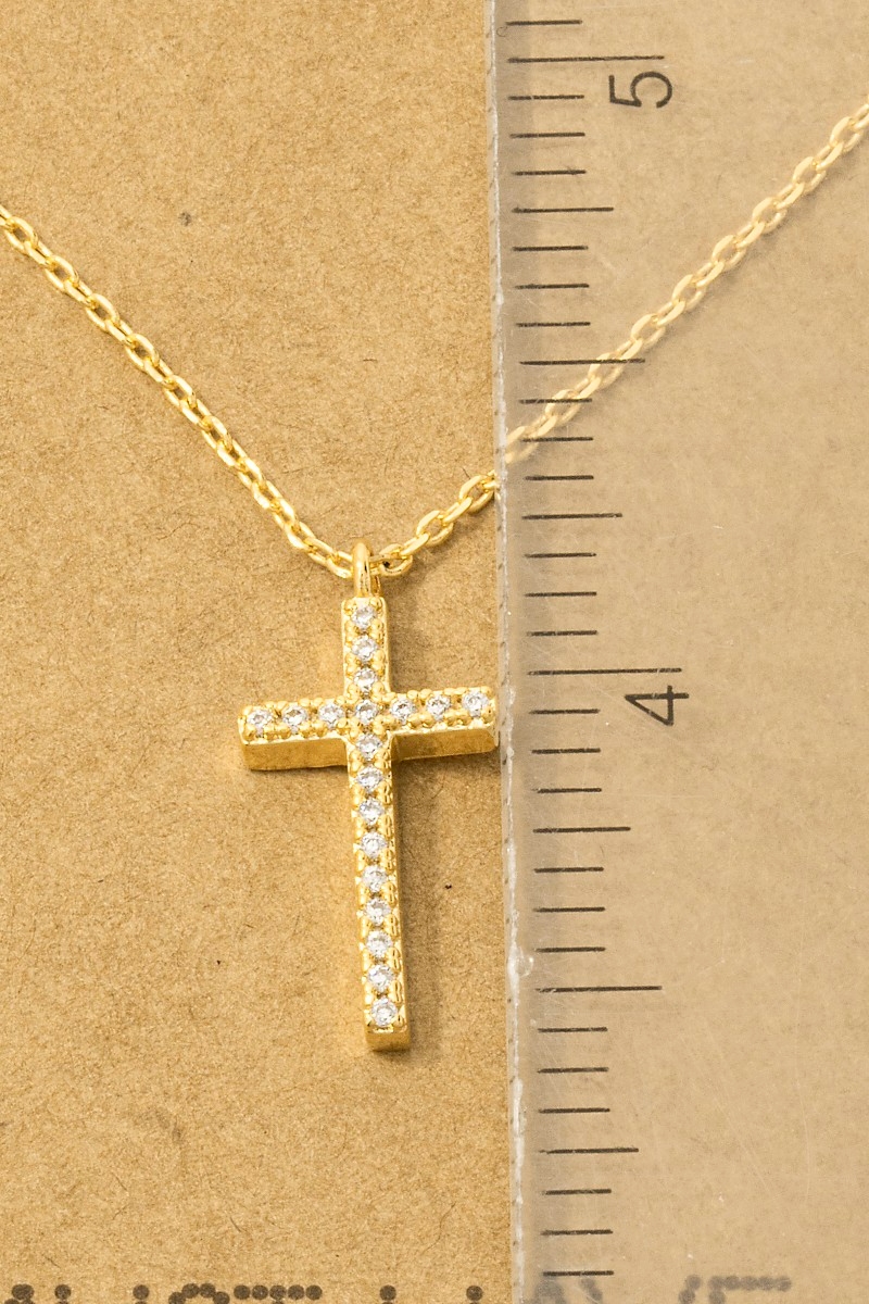 Gold Dipped Cz Pave Cross Pendant Necklace