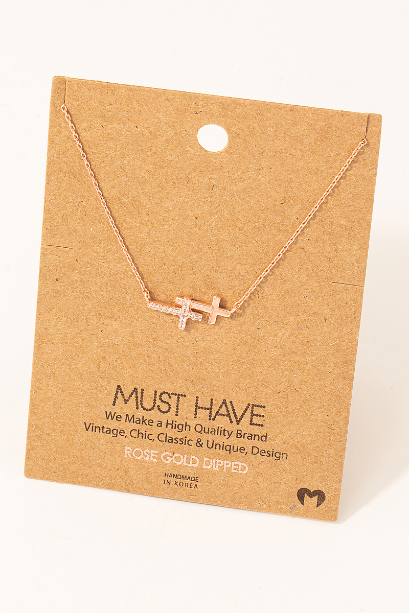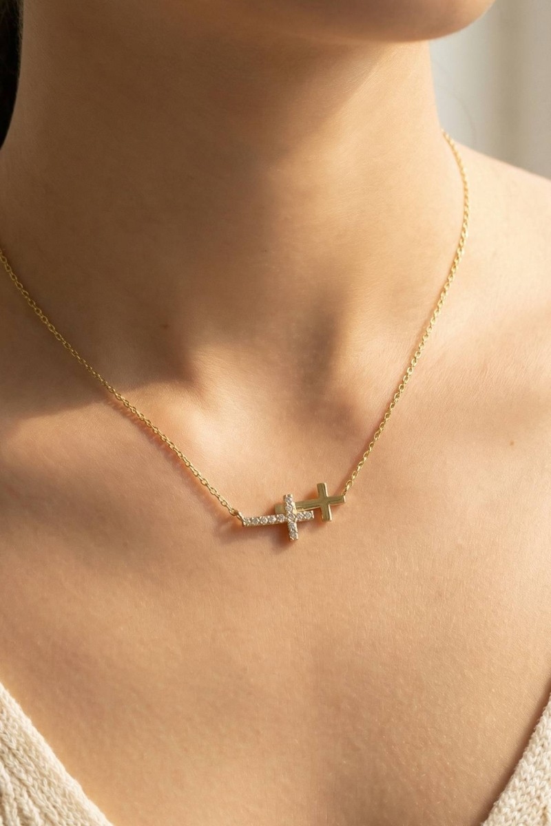 - This pendant necklace displays a fashionable gold dipped double cross style. Discover the perfect balance of functionality and fashion.