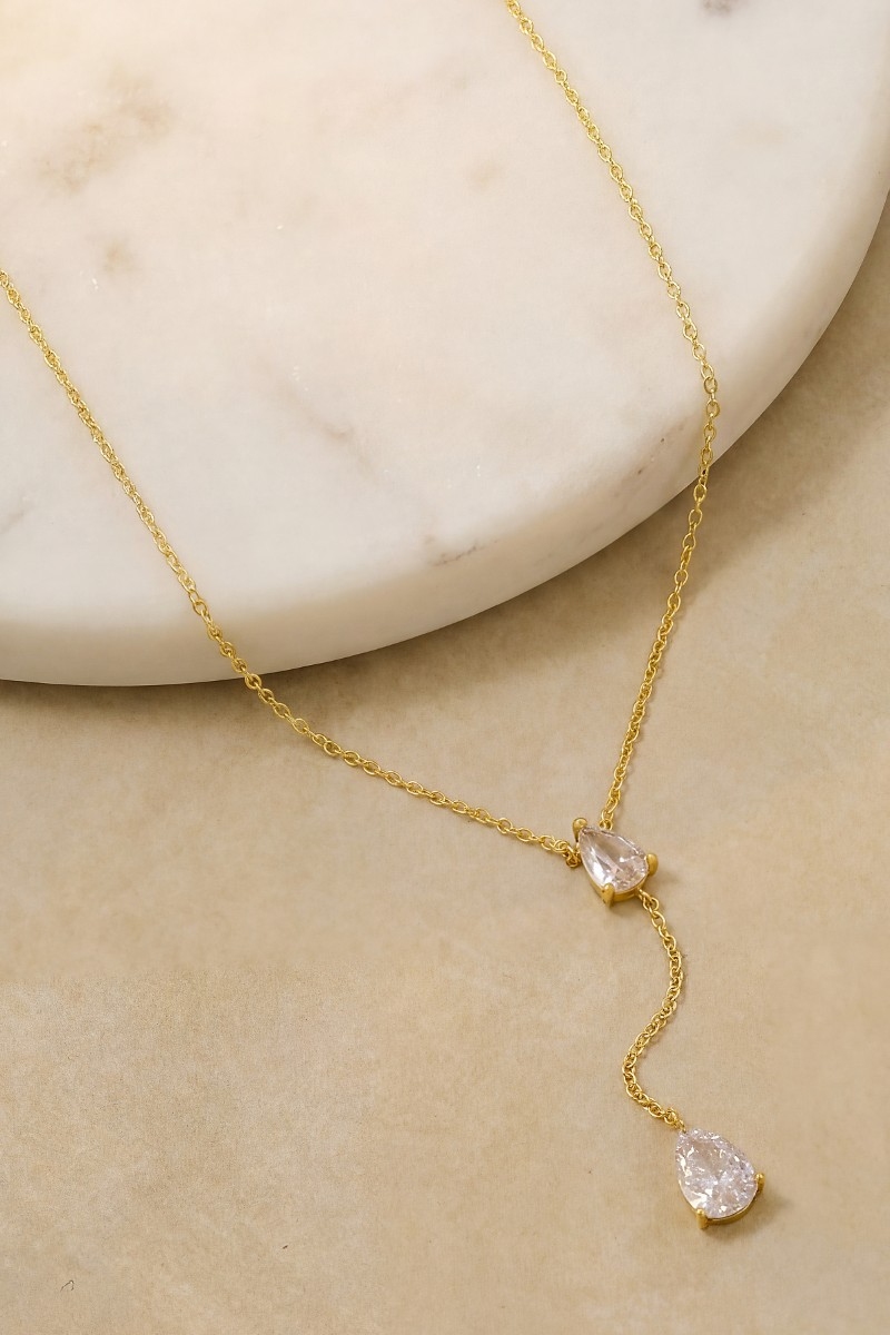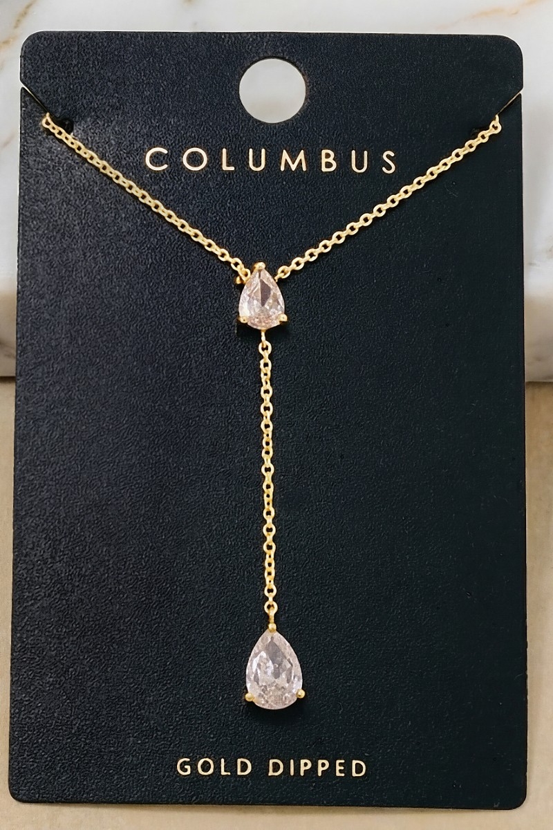- This pendant necklace displays a fashionable gold dipped double teardrop pendant y necklace style. Celebrate individuality with this pendant necklace that effortlessly expresses your unique sense of style.