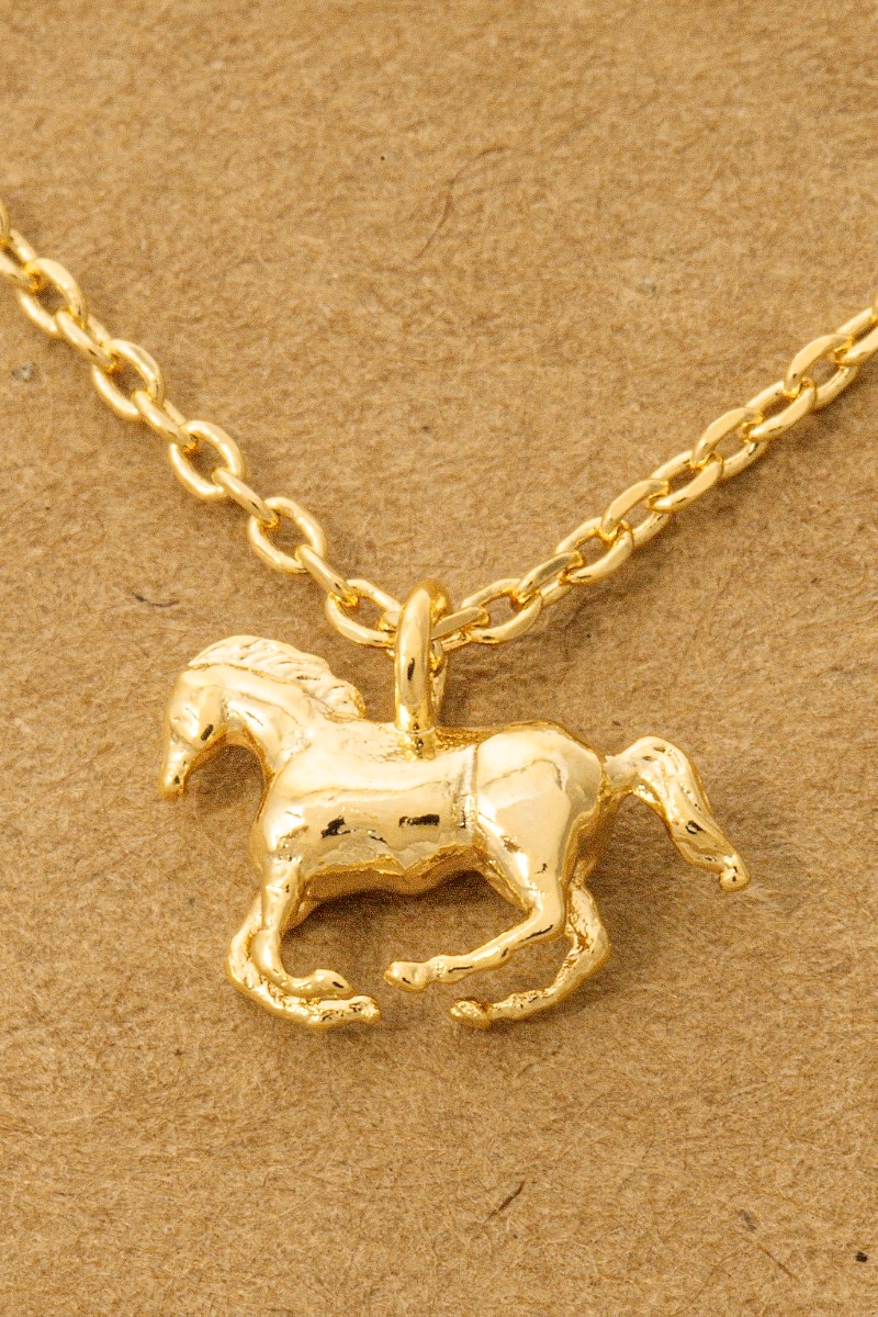 - This necklace introduces a unique gold dipped mini horse pendant style. Step into a world of refined taste as this necklace effortlessly refines the details of your outfit.