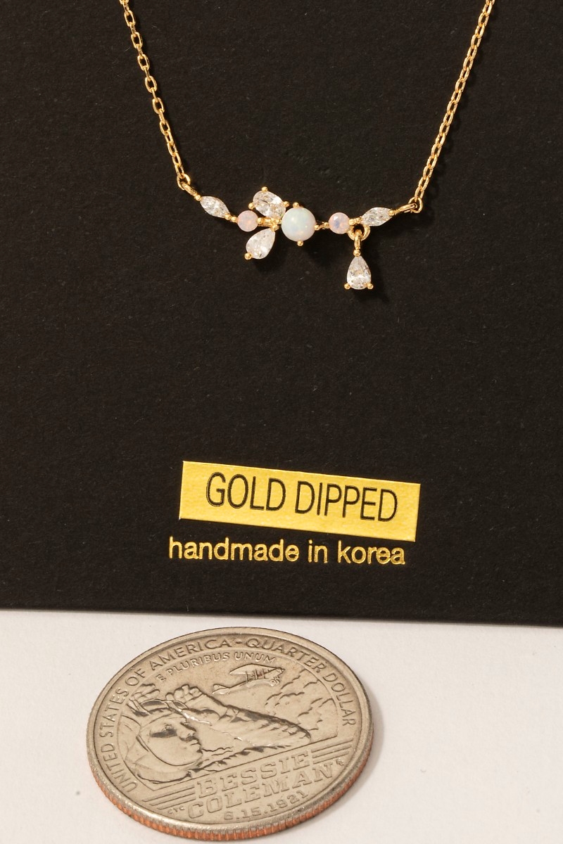 - This necklace displays a vibrant gold dipped assorted cubic zirconia bar pendant style. Indulge in the artistry of accessorizing with this unique piece.