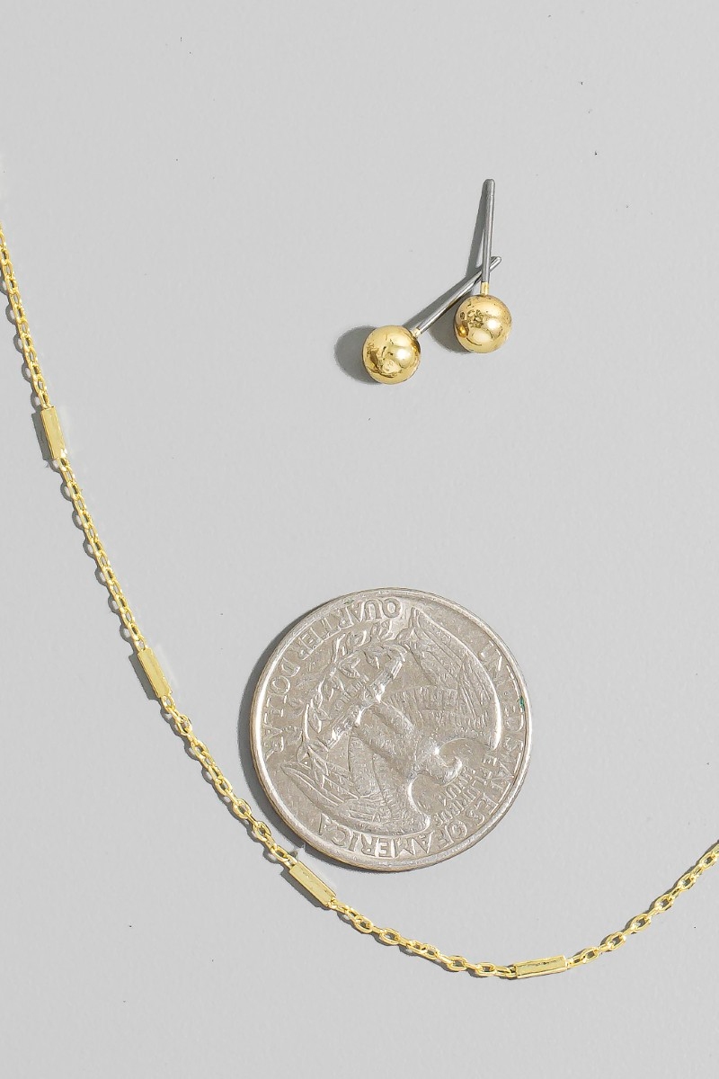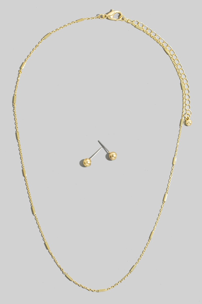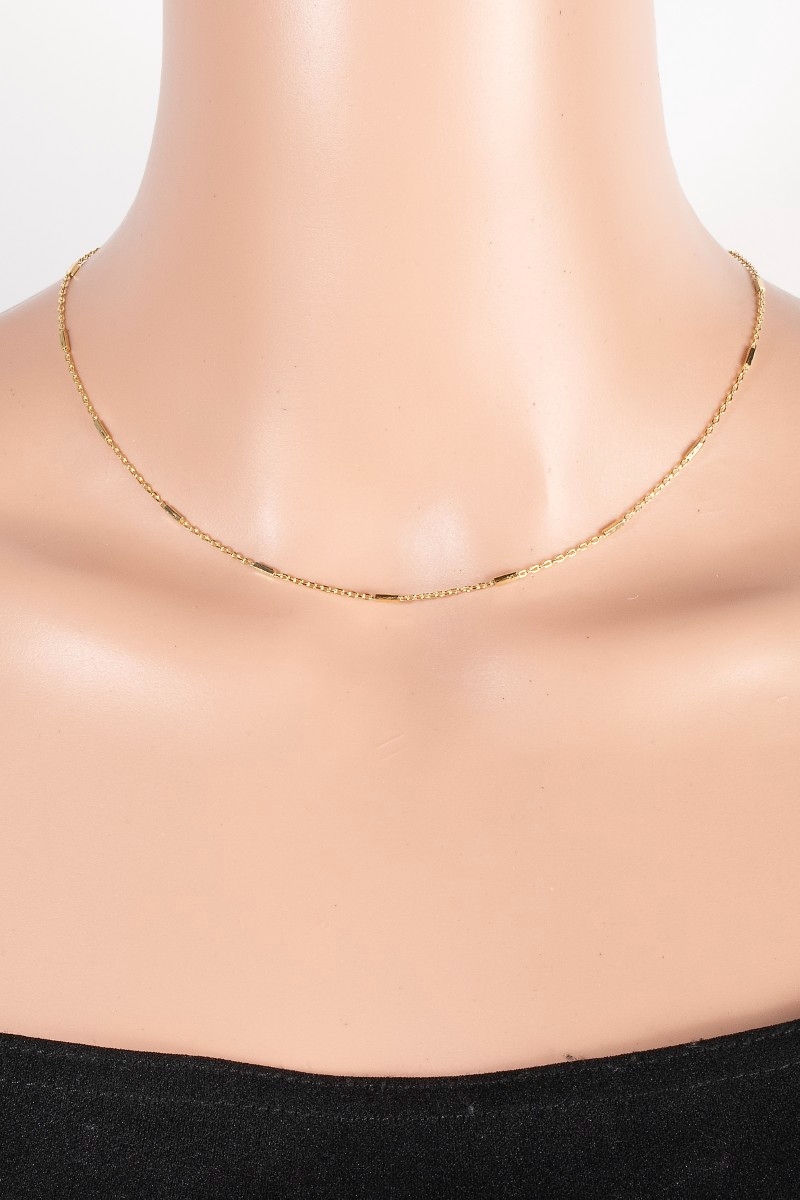 • This chain necklace showcases a unique gold dipped bar station set style. Redefine your look effortlessly with this standout, on-trend piece.