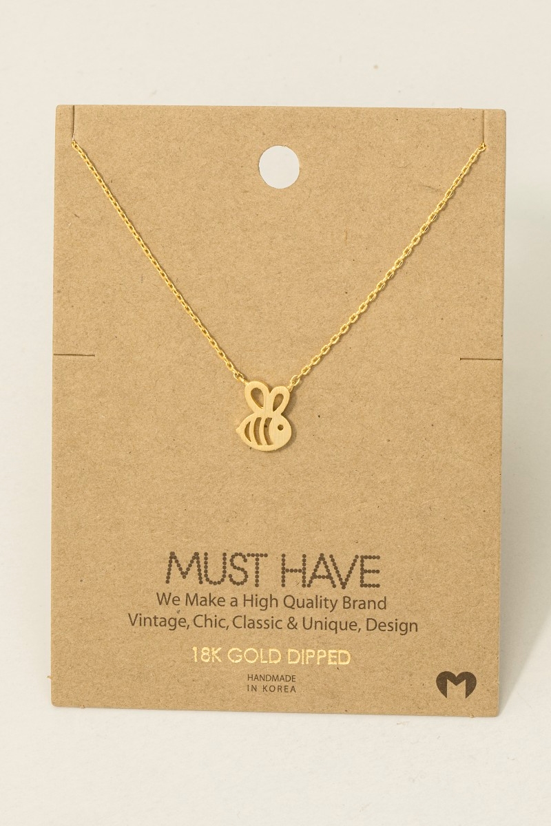 Gold Dipped Bar Pendant Enamel Accent Necklace