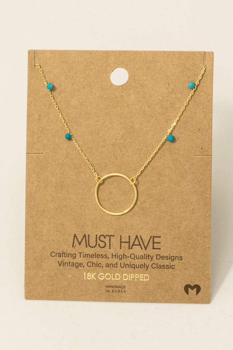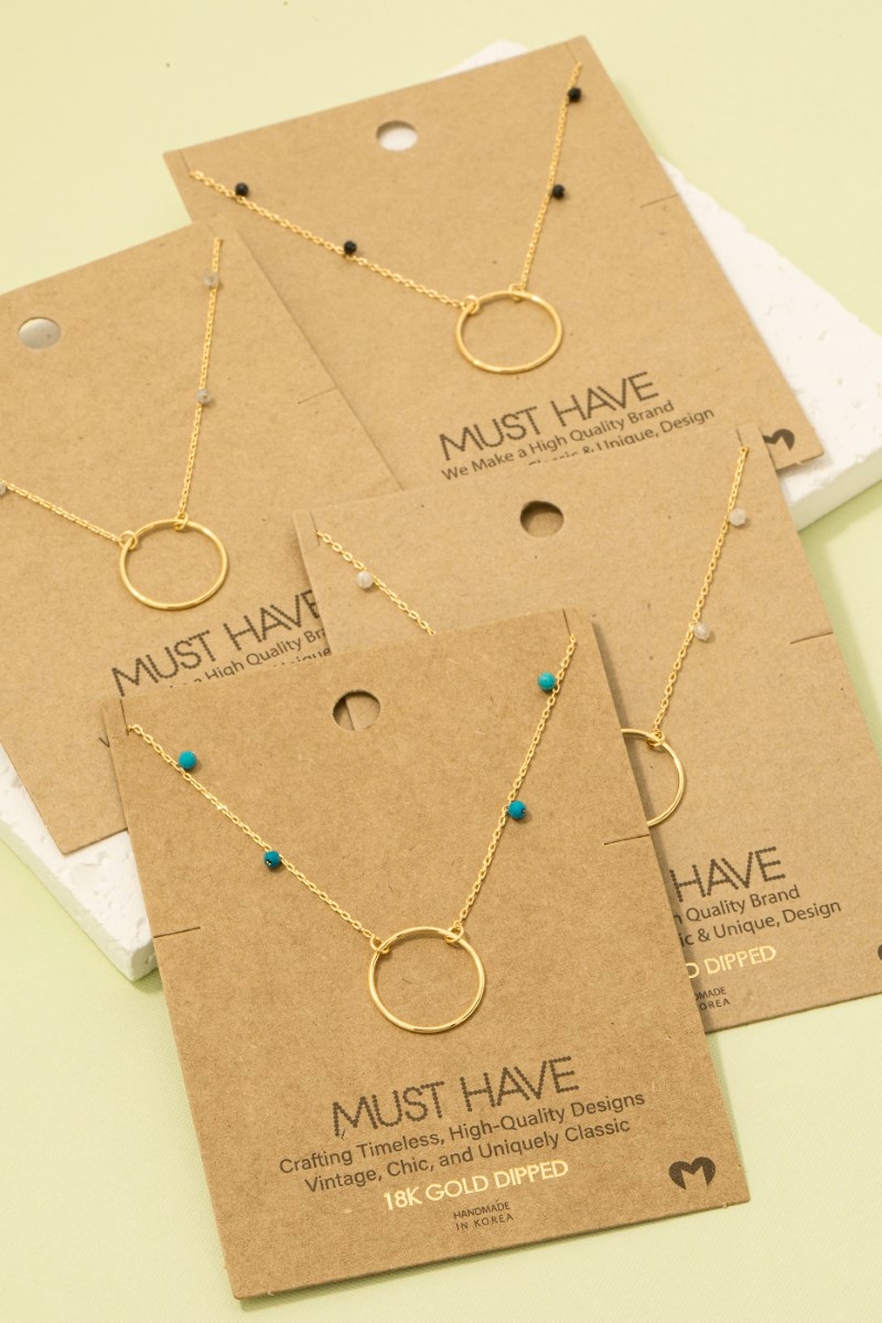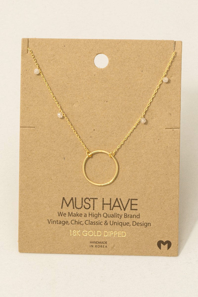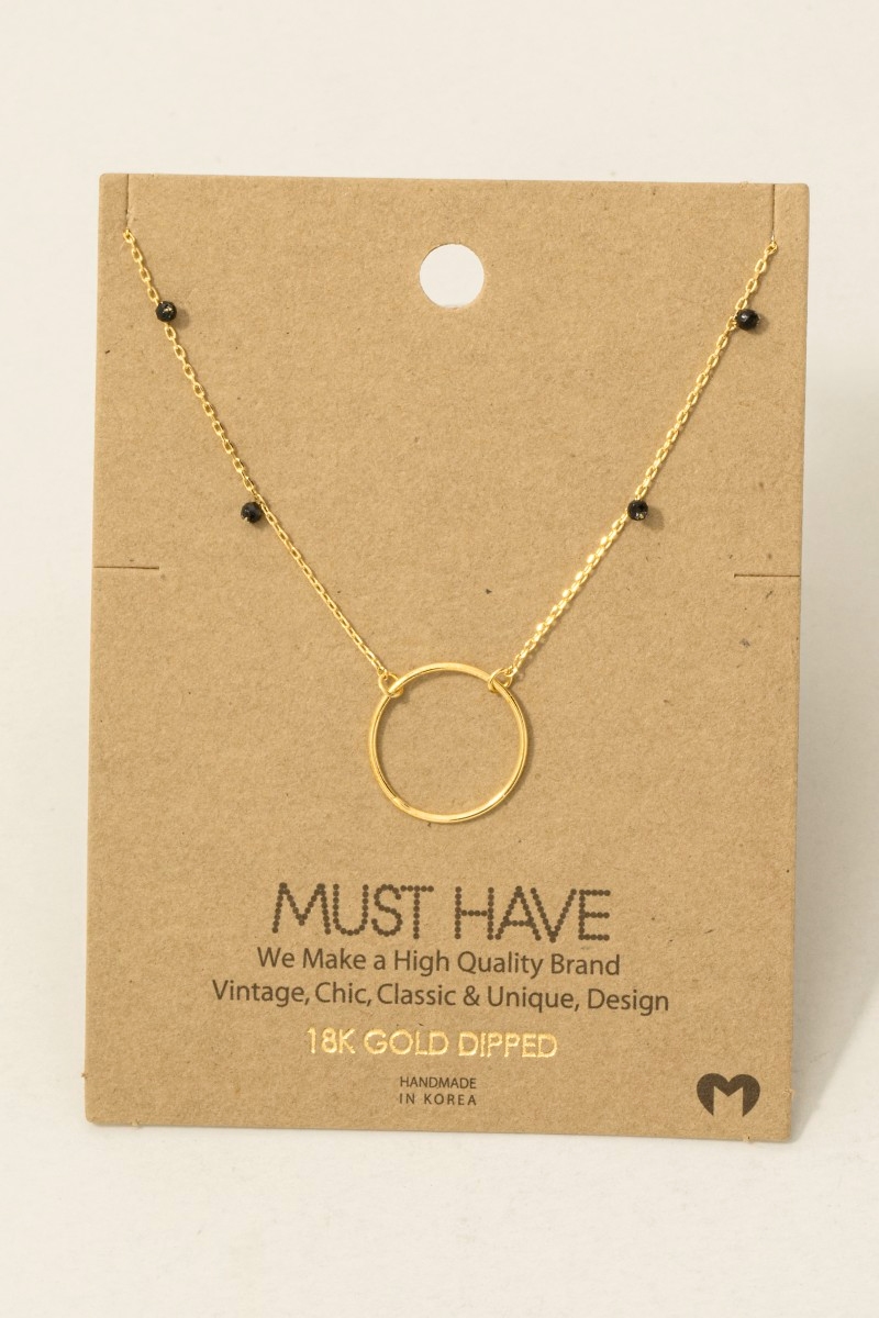 • This trending necklace showcases a unique gold dipped center hoop charm necklace style. Delight in the nuanced details that make this trending necklace a testament to fine design and impeccable taste.
