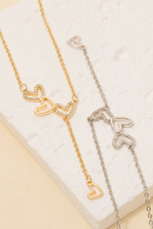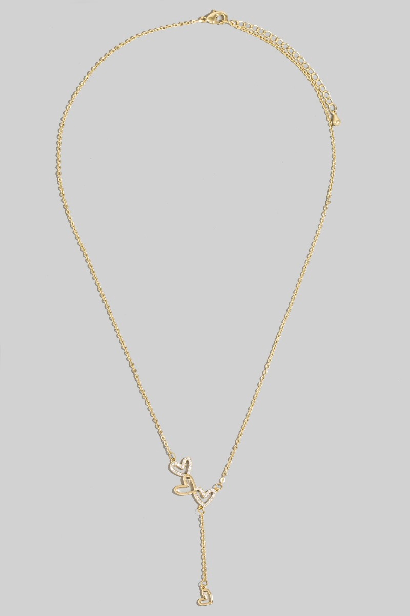 Gold Dipped Mini Heart Station Charms Chain Necklace