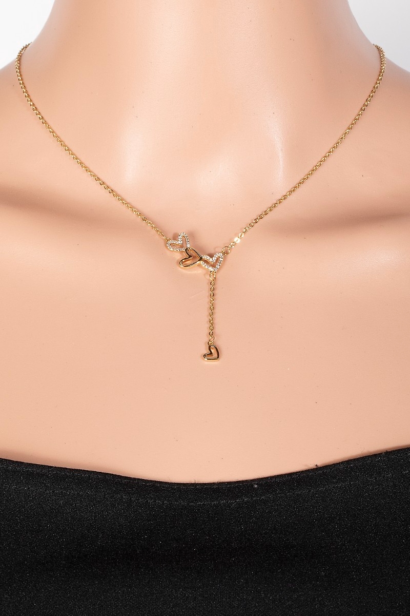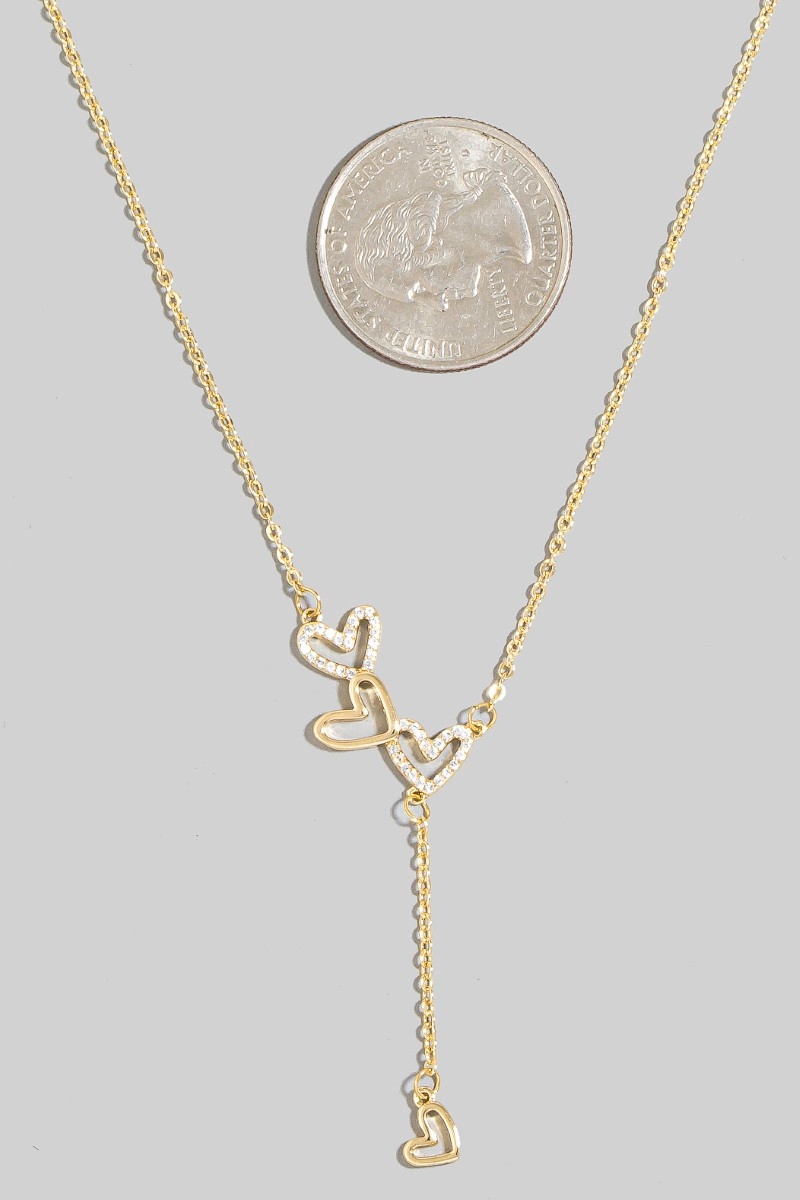 • This chain necklace introduces a unique gold dipped cubic zirconia hearts charms style. Immerse yourself in the details of design, as this chain necklace effortlessly becomes a conversation starter.