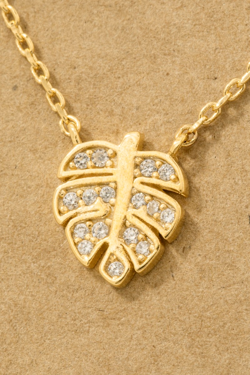 Gold Dipped Cz Pendant Enamel Accent Necklace