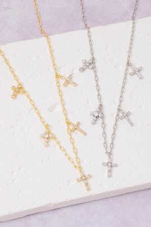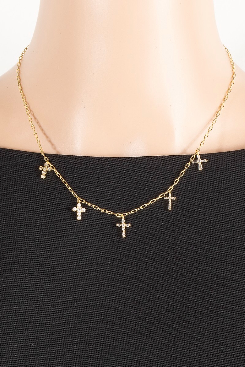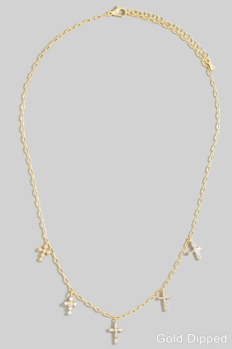 - This columbus jewelry necklace displays a fashionable gold dipped cubic zirconia and pearl cross charms style. Revel in the intricate design that effortlessly distinguishes This columbus jewelry necklace, making it a statement piece.