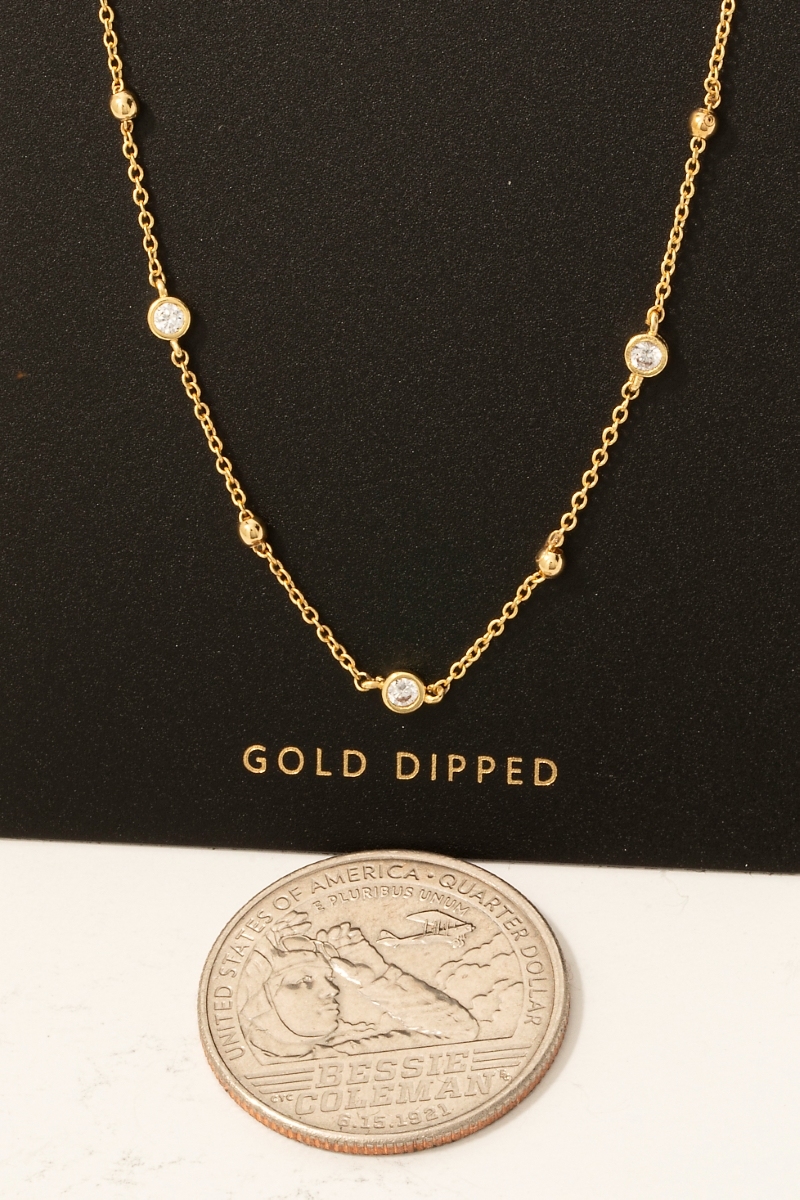- this columbus jewelry necklace showcases a timeless gold dipped cubic zirconia station charms style. Experience the joy of accessorizing with this piece that effortlessly combines versatility and charm.