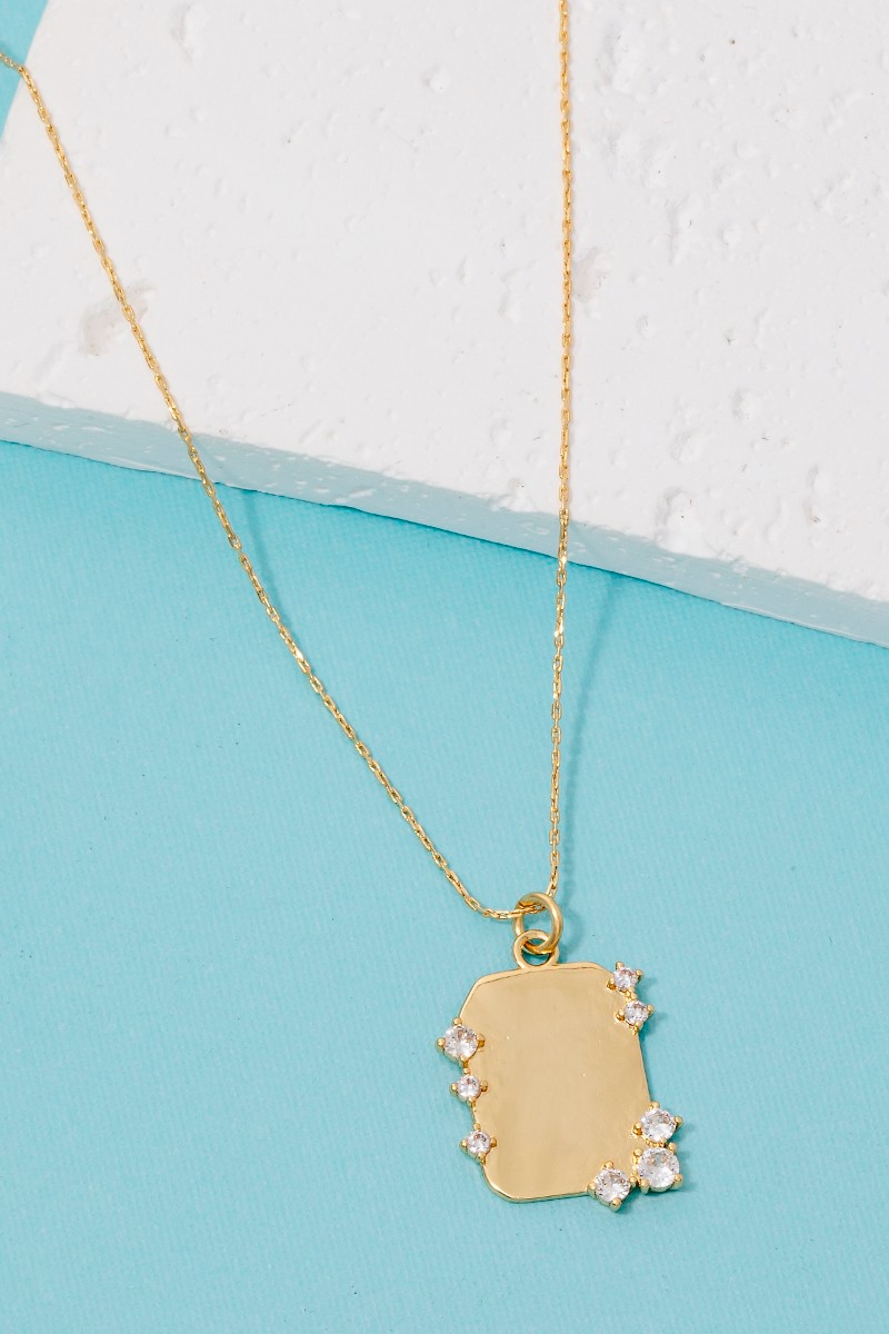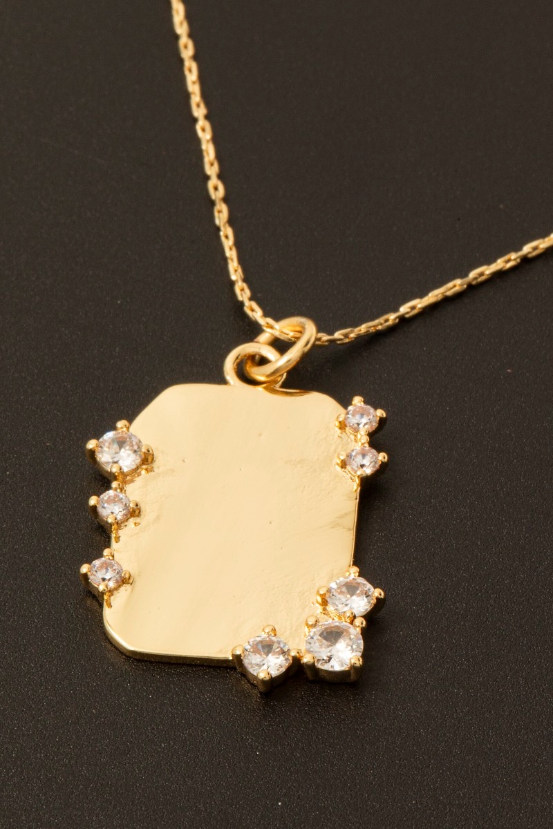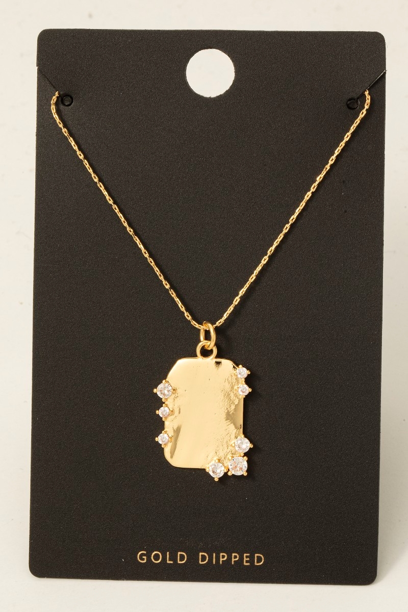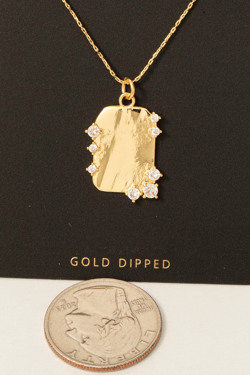 - this columbus jewelry necklace adds a modern gold dipped cubic zirconia studded rectangle pendant style. Unveil a new dimension of sophistication as this columbus jewelry necklace effortlessly enhances the elegance of your ensemble.