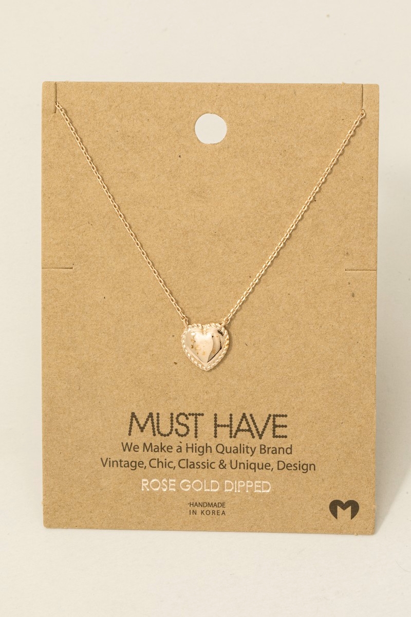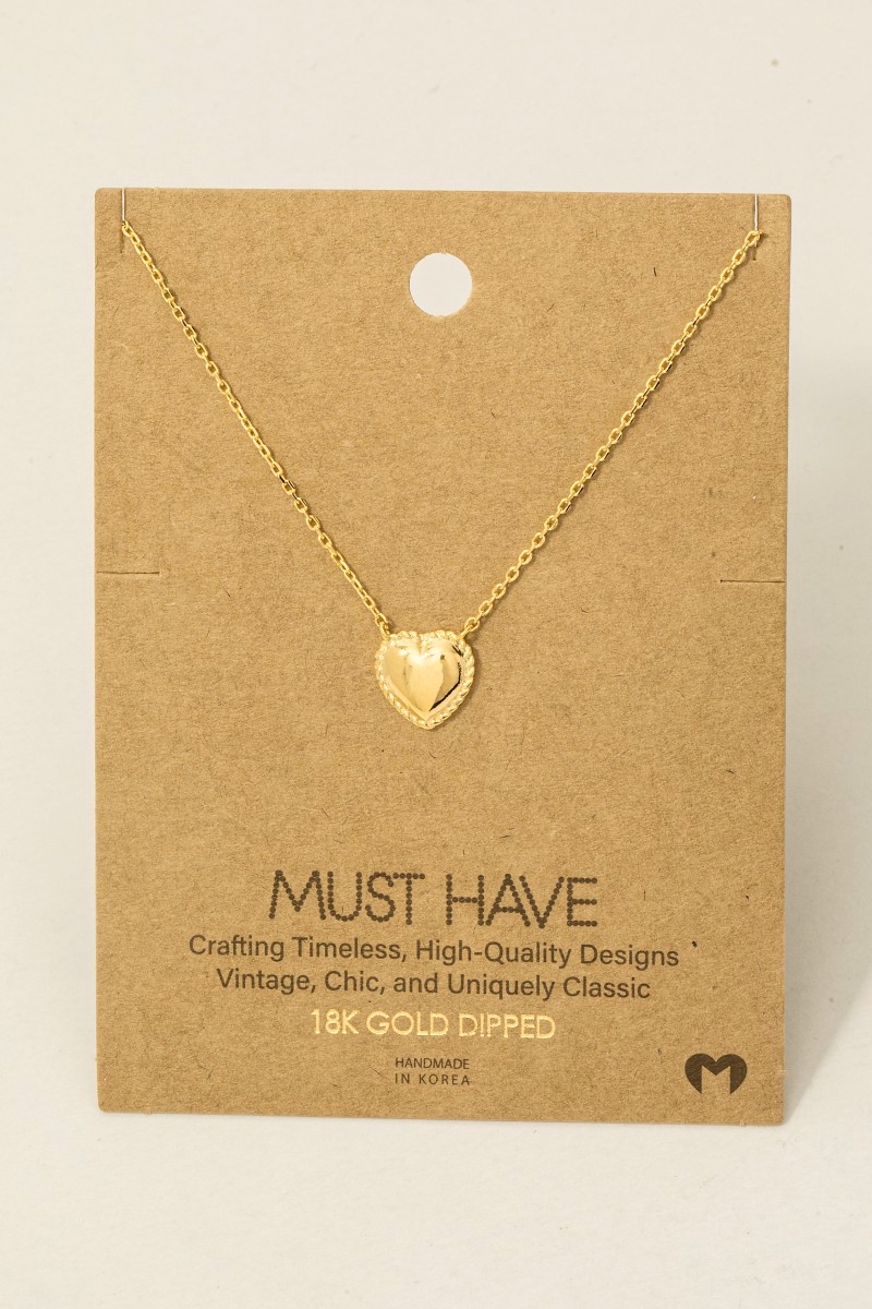 • This trending necklace adds a modern gold dipped engraved heart pendant necklace style. Indulge in the artistry of accessorizing with this unique piece.