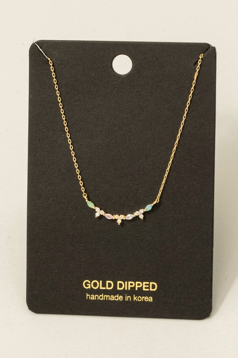 Gold Dipped Bar Pendant Enamel Accent Necklace