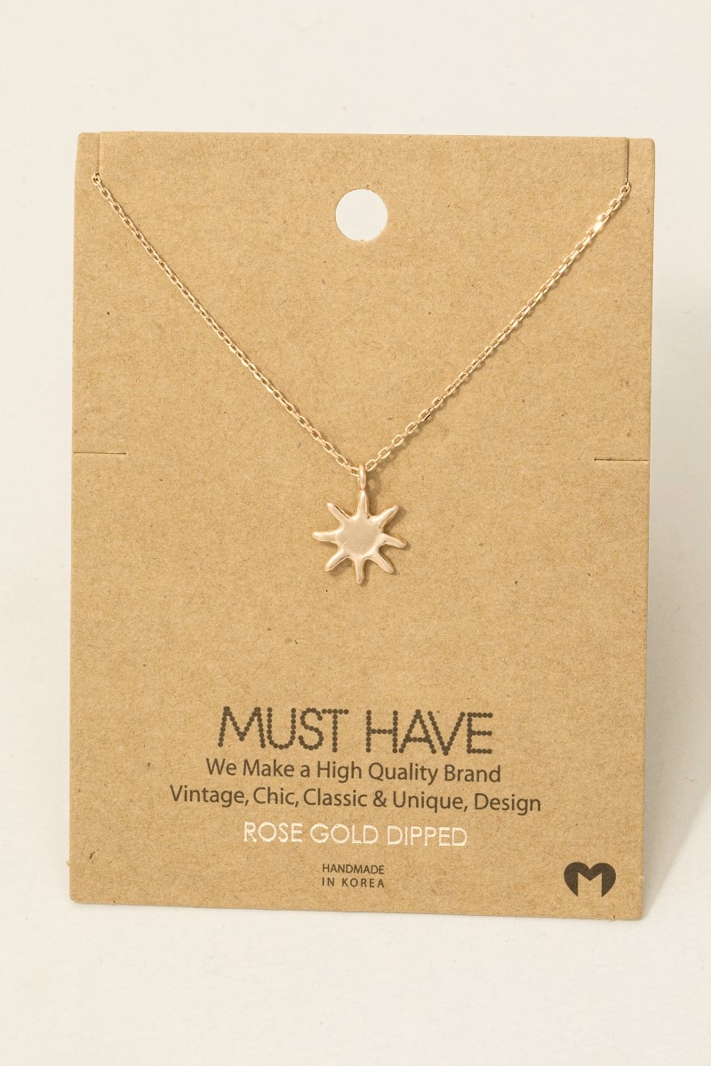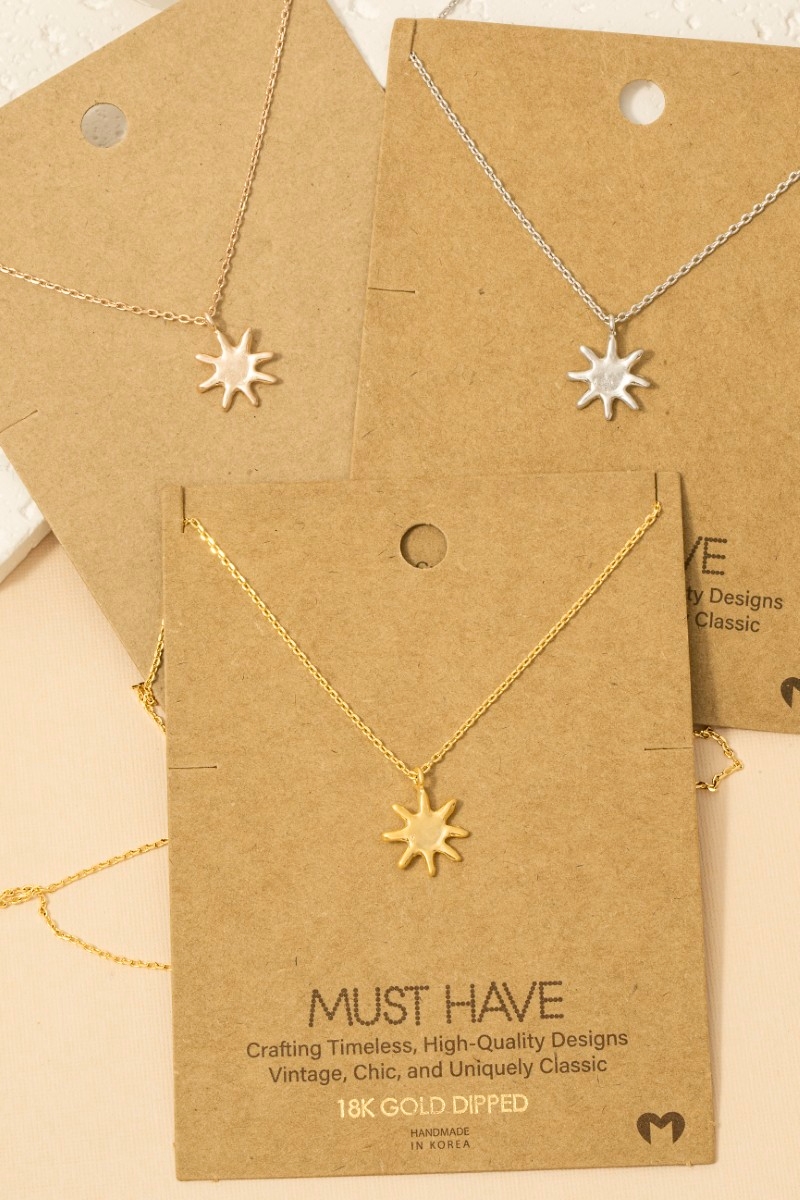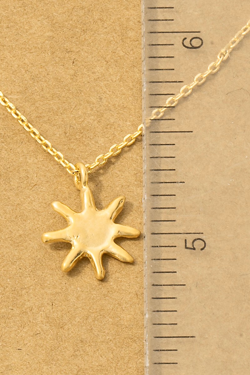• This necklace introduces a stunning gold dipped matte finish sun pendant style. Indulge in the artistry of accessorizing with this unique piece.