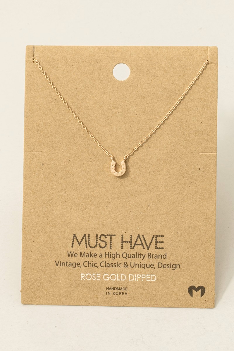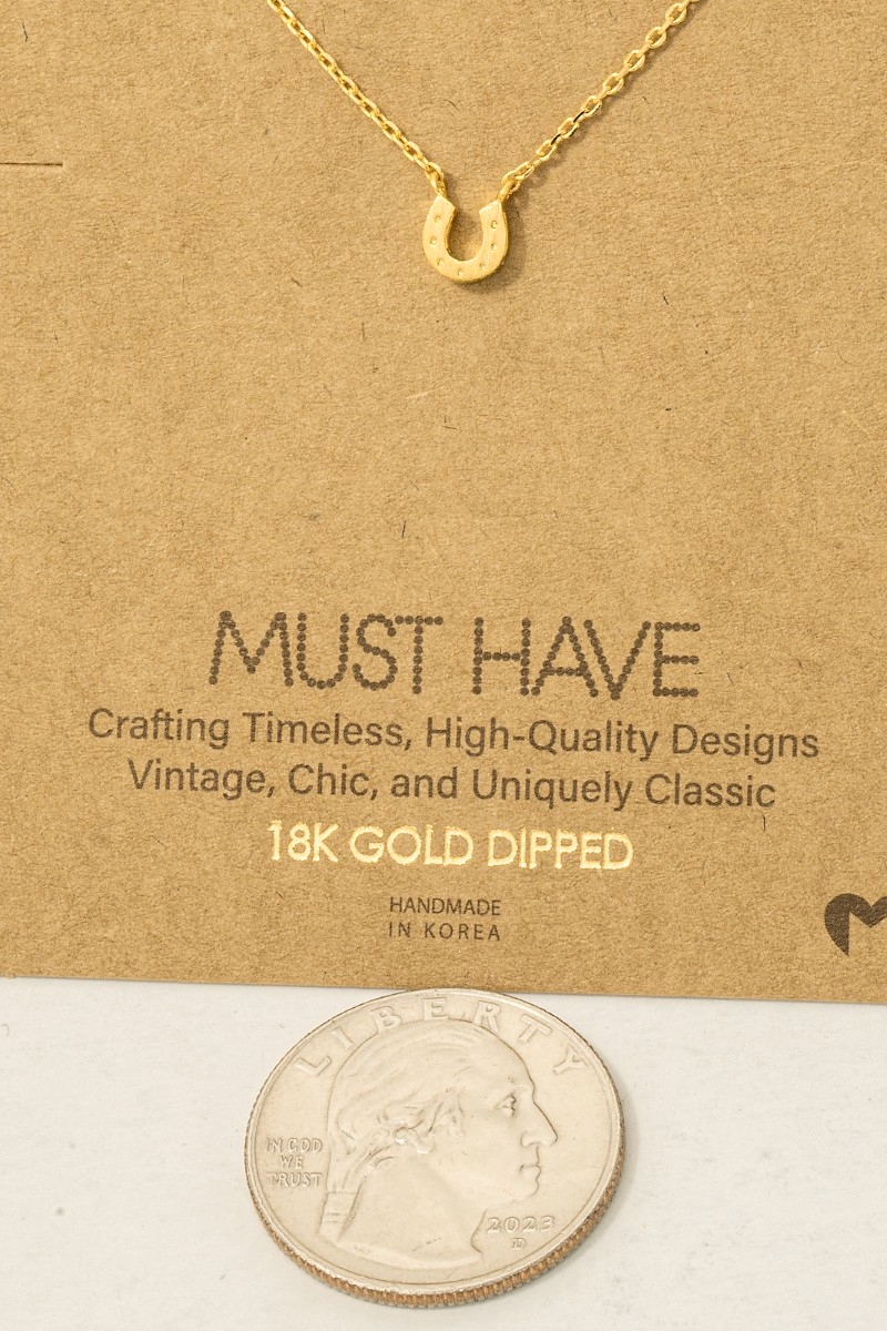 • This trending necklace introduces a unique gold dipped mini horseshoe pendant necklace style. Savor the craftsmanship that goes beyond the ordinary, as this trending necklace effortlessly captivates attention.