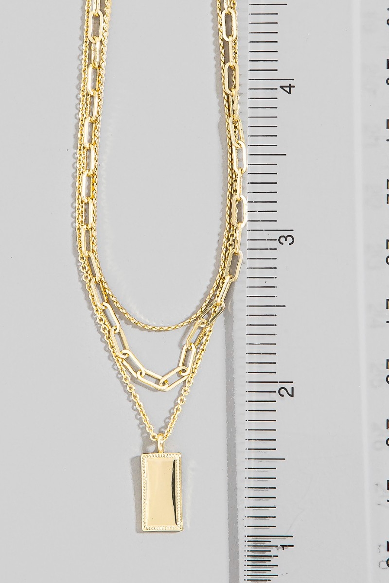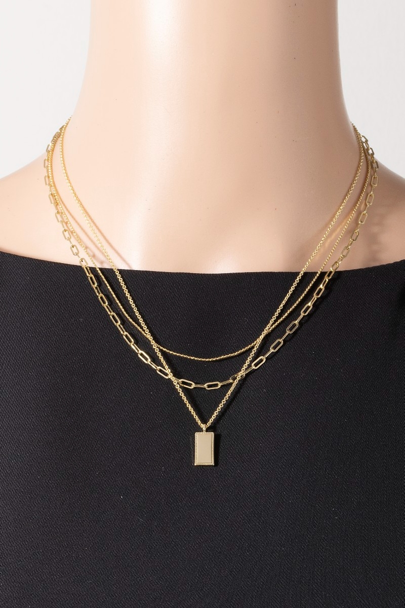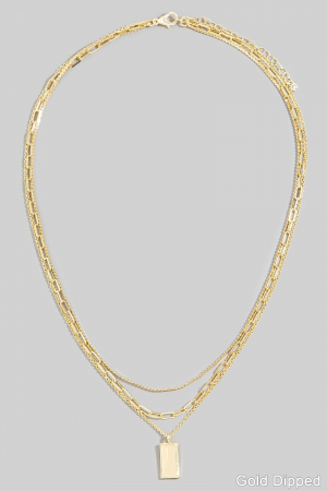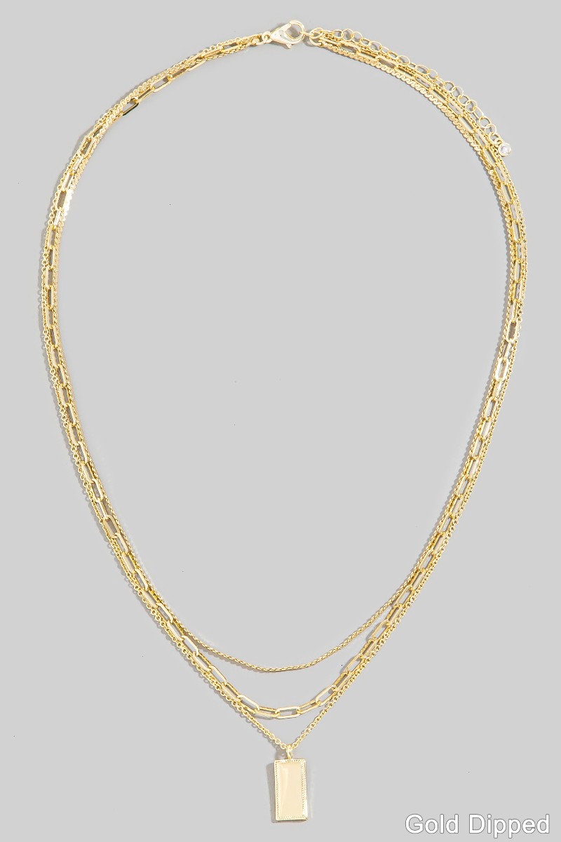- This pendant necklace introduces a unique gold dipped rectangle pendant layered chains necklace style. Celebrate the art of accessorizing with this piece that effortlessly encapsulates modern trends.