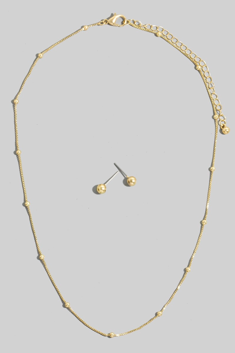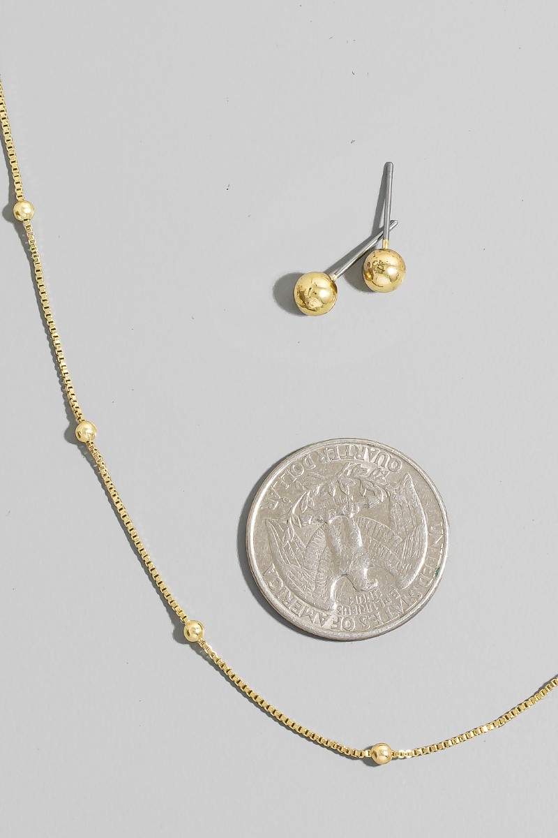 • This chain necklace showcases a timeless gold dipped station beads dainty box set style. Indulge in the artistry of accessorizing with this unique piece.