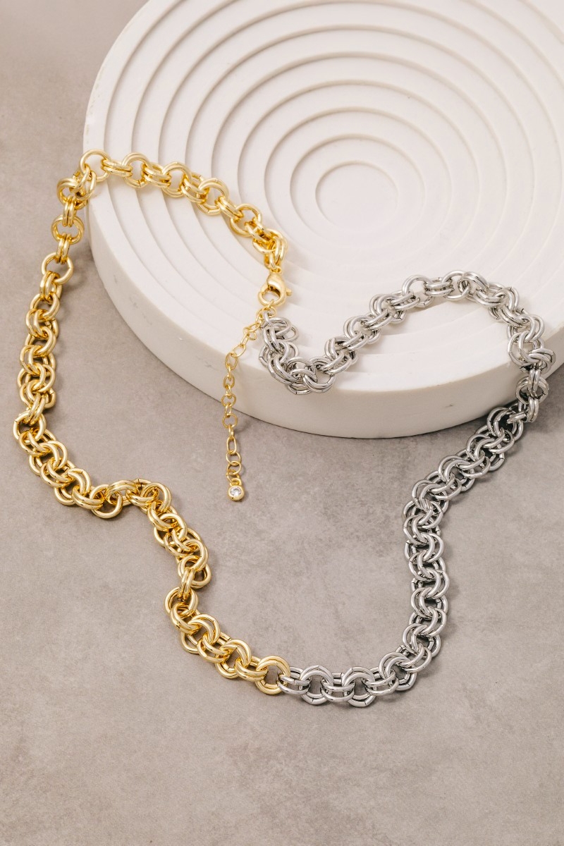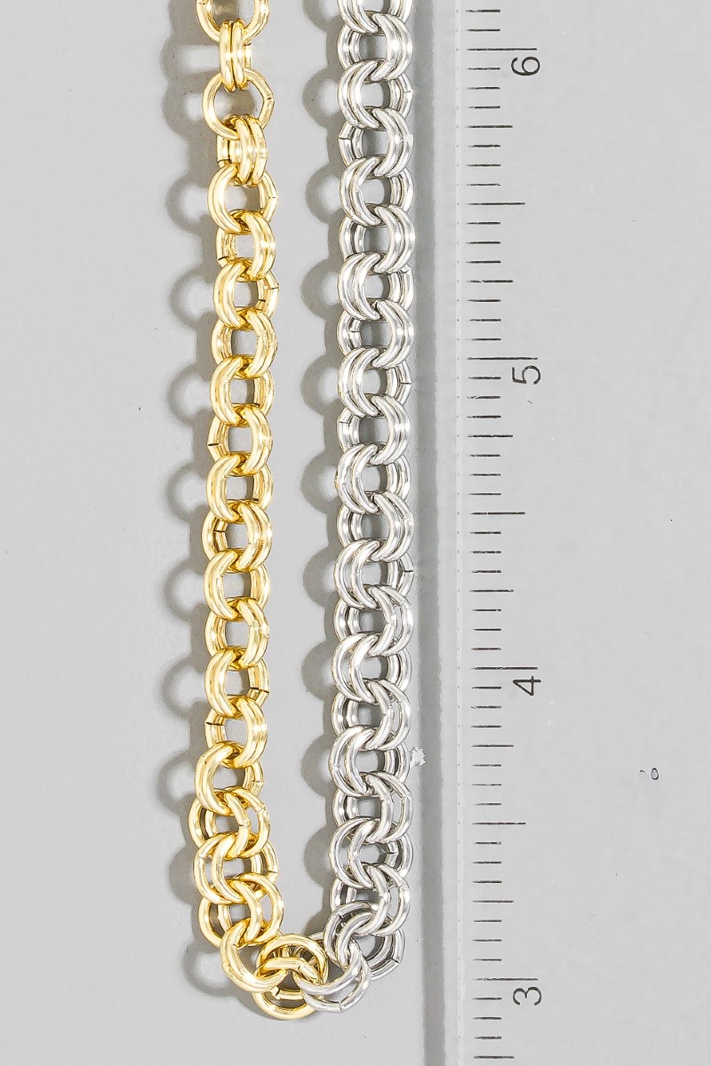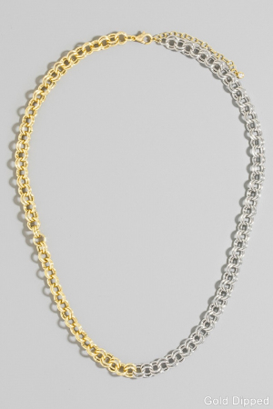 - This chain necklace introduces a stunning gold dipped two tone double link style. Witness the perfect fusion of style and functionality as this chain necklace effortlessly complements your lifestyle.