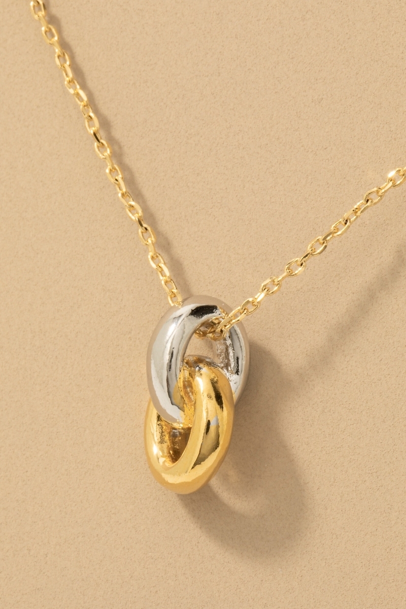 • This necklace showcases a unique gold dipped two tone ring link pendant style. Experience refined sophistication with this understated yet stylish piece.