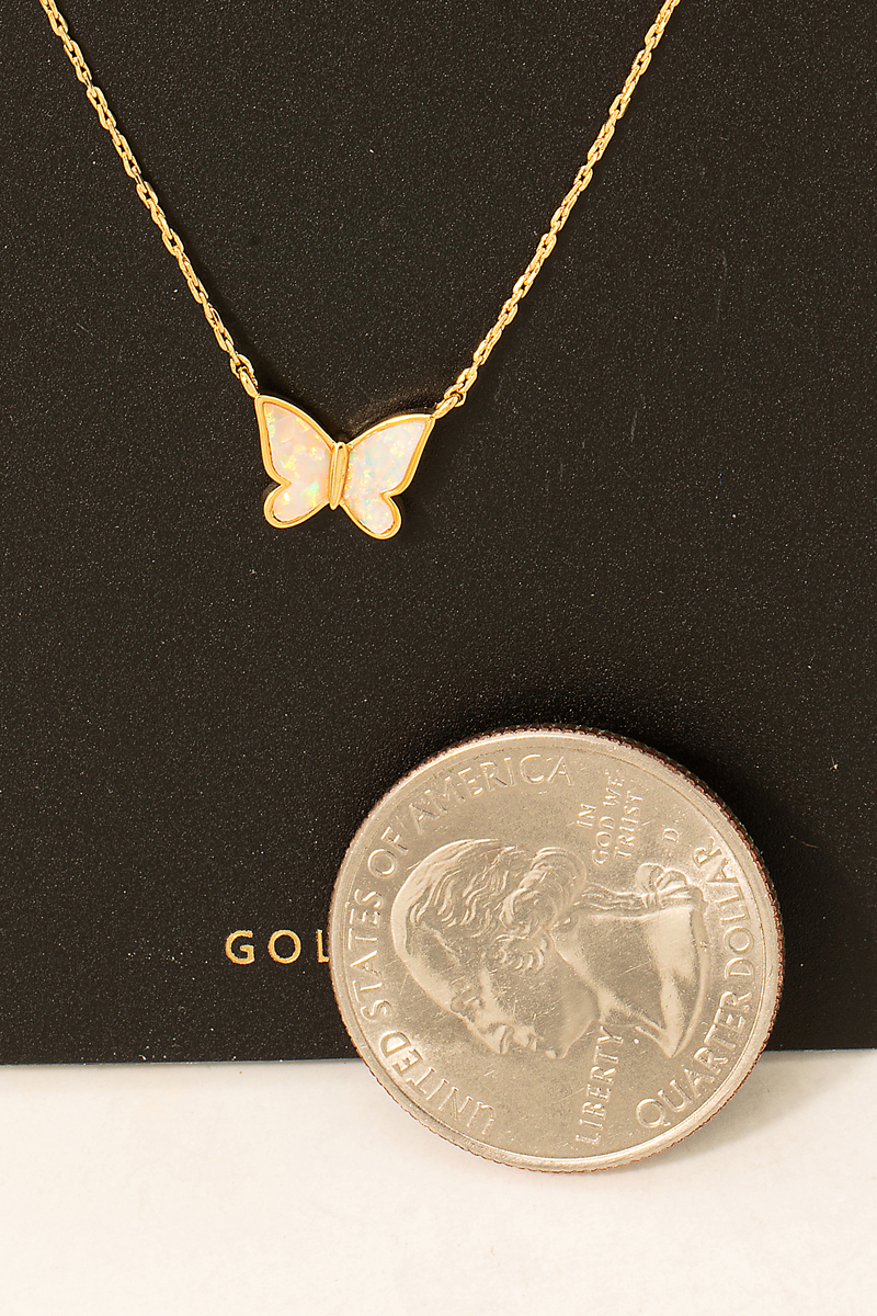 • this columbus jewelry necklace showcases a timeless gold dipped opal butterfly pendant style. Celebrate the art of accessorizing with this piece that effortlessly encapsulates modern trends.