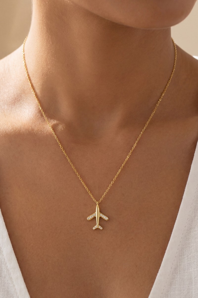 - This pendant necklace displays a fashionable gold dipped pave airplane style. Celebrate individual style with this versatile, eye-catching addition.