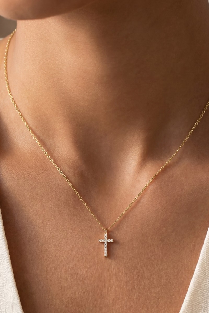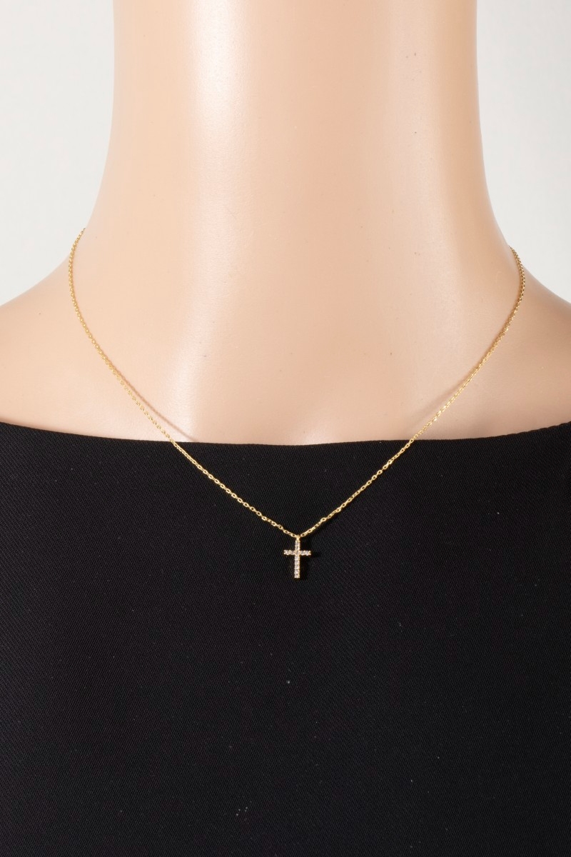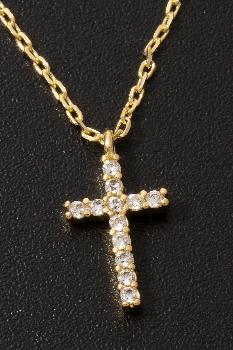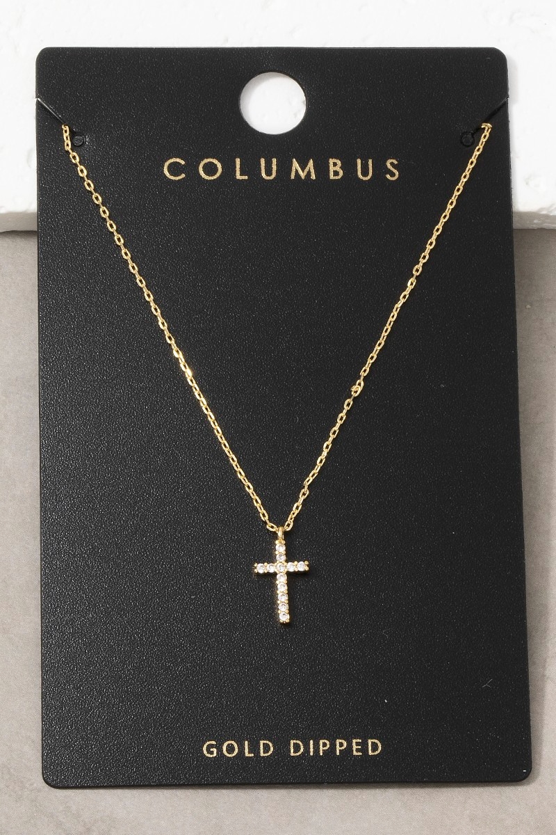 - This pendant necklace features a fashionable gold dipped pave min cross style. Experience a subtle blend of modernity and classic charm as this pendant necklace effortlessly adorns your ensemble.
