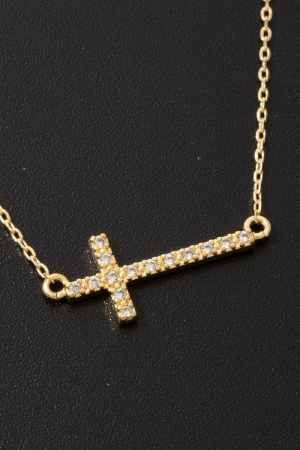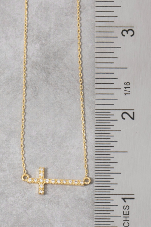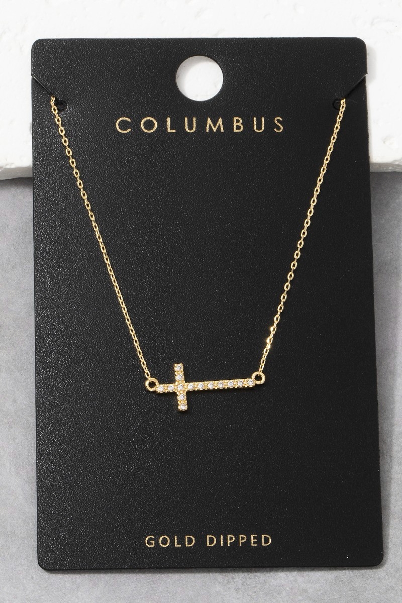 Gold Dipped Pave Min Cross Pendant Necklace