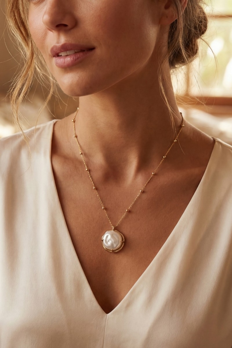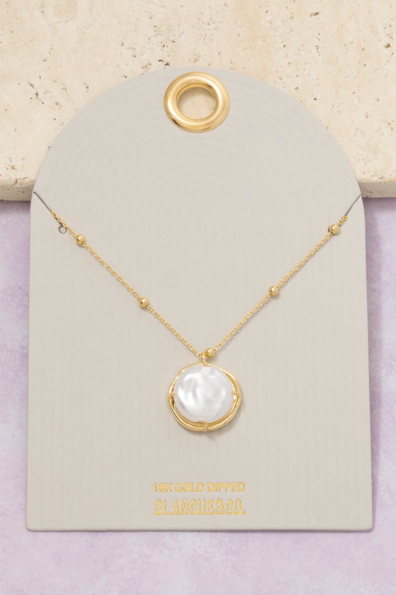 - This pendant necklace brings a luxurious gold dipped pearl coin style. Celebrate the art of accessorizing with this piece that effortlessly encapsulates modern trends.