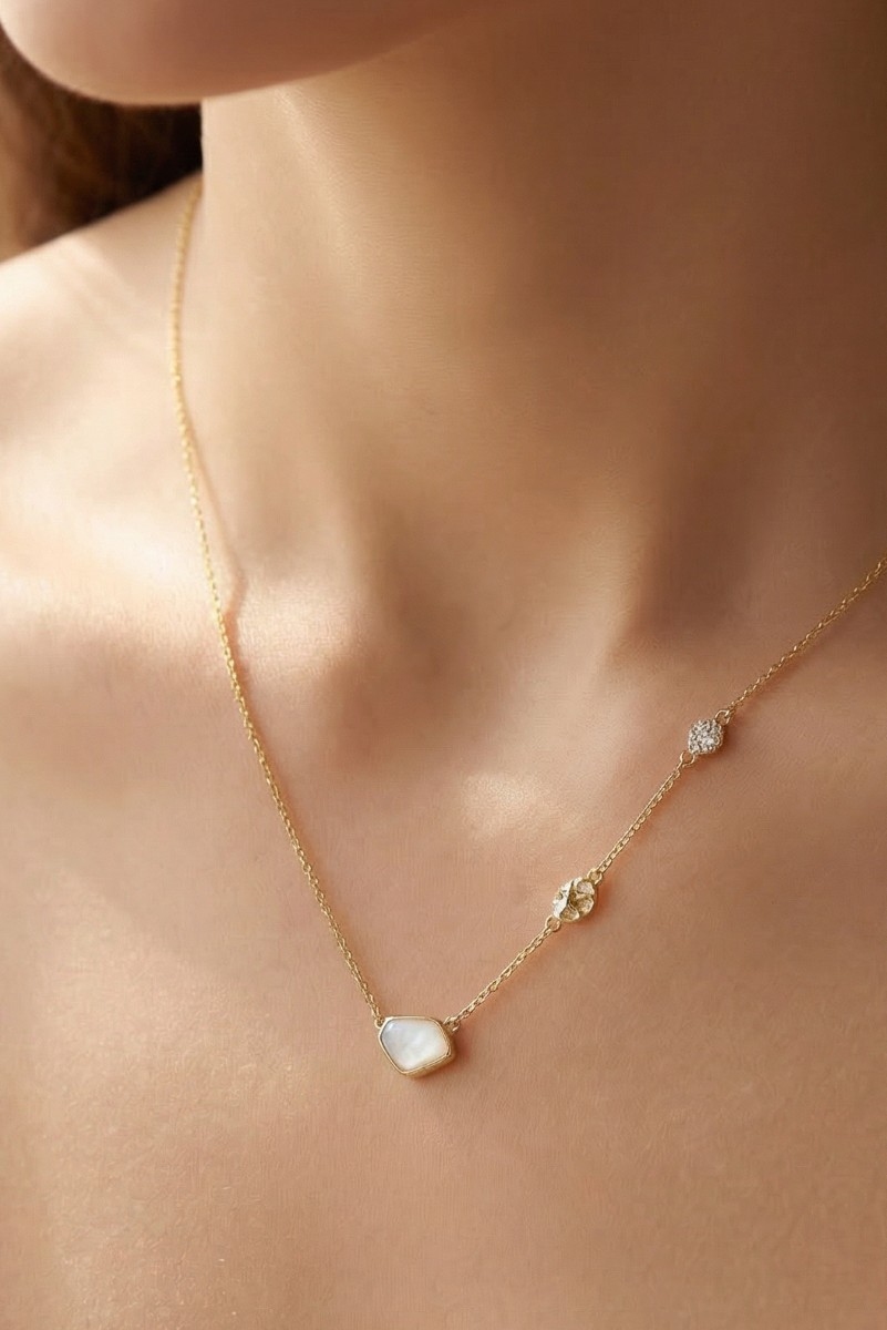 Gold Dipped Cz Ring Bead Pendant Necklace