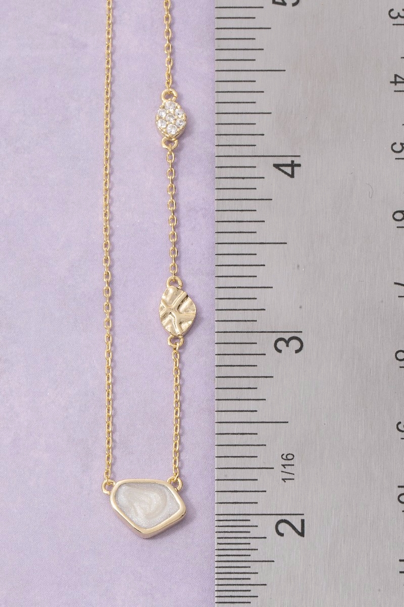 Gold Dipped Cz Bar Asymmetric Chain Necklace