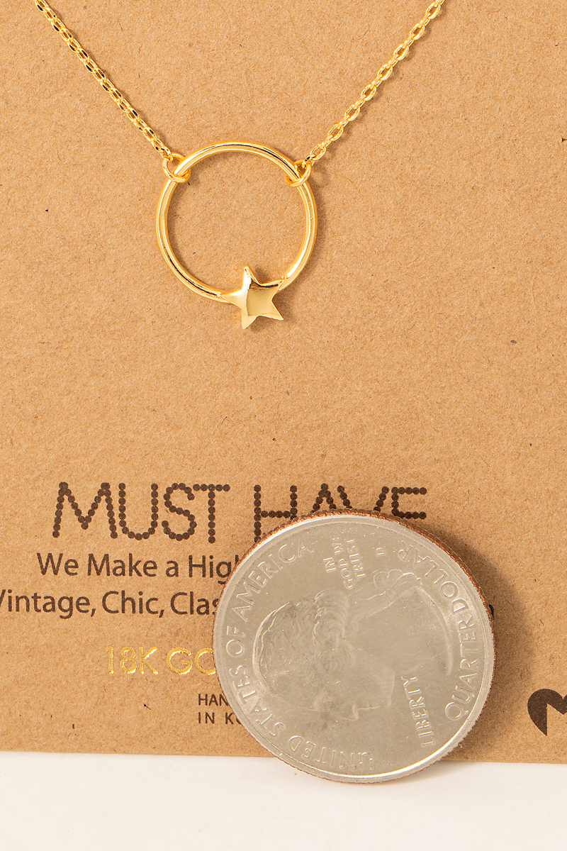 • This trending necklace features a fashionable gold dipped star hoop pendant necklace style. Indulge in the allure of exquisite craftsmanship as this trending necklace effortlessly adds a touch of luxury to your attire.