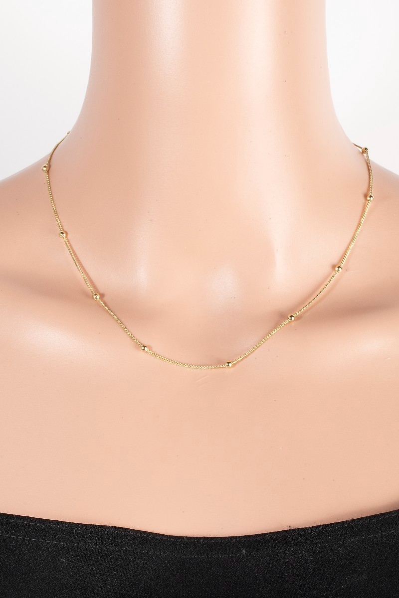 • This chain necklace introduces a unique gold dipped station beads dainty set style. Celebrate the art of accessorizing with this piece that effortlessly encapsulates modern trends.