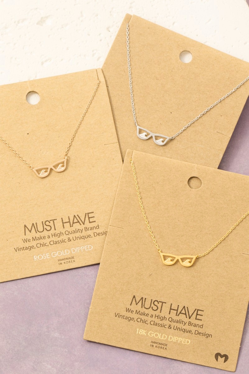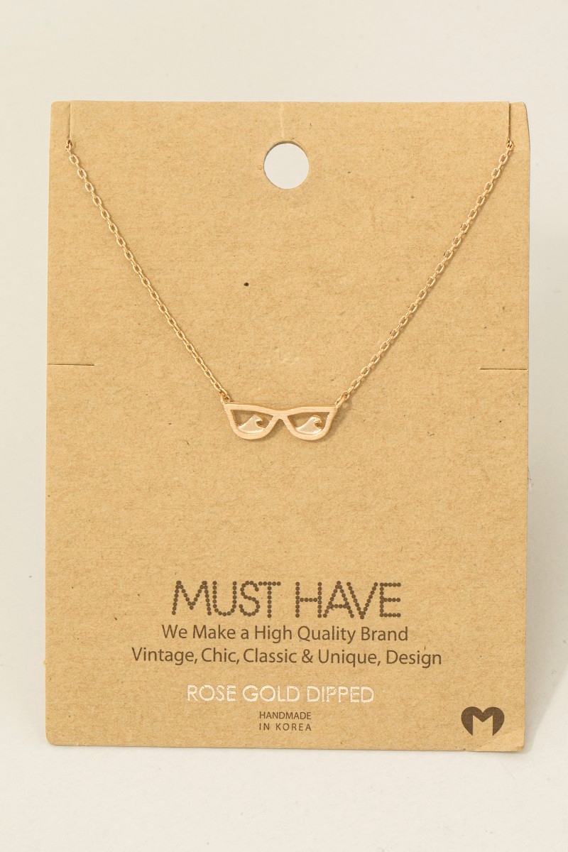 - This trending necklace displays a vibrant gold dipped sunglasses pendant necklace style. Discover the perfect balance of subtlety and flair as this trending necklace effortlessly completes your look.